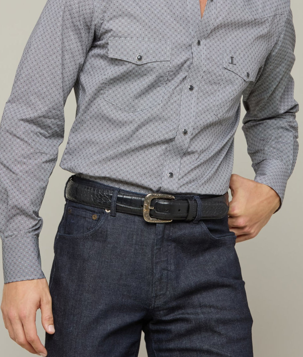Lucchese men’s belt made from American Alligator. Lucchese craftsmen use a unique polish method that creates different hues and adds texture to the leather. giving it a refined look. This belt is made with farm-raised American Alligator hide. pairing perfectly back to our Baron. Handmade in Texas.