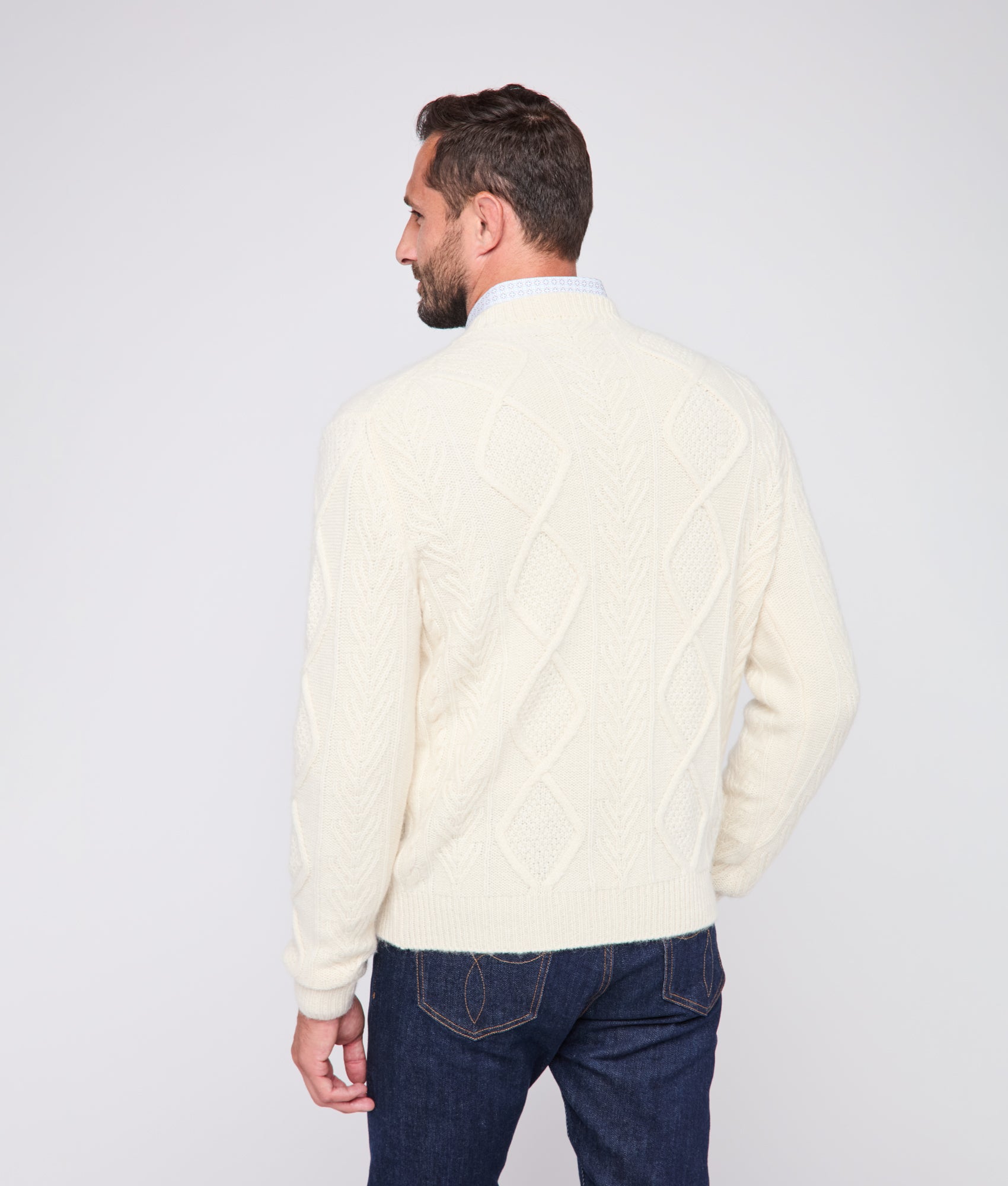Christopher is a beacon of warmth and tradition. With its sculptural cable-knit pattern and evergreen silhouette. the Christopher Sweater brings the fisherman knit heritage into the world of refined Italian craftsmanship.