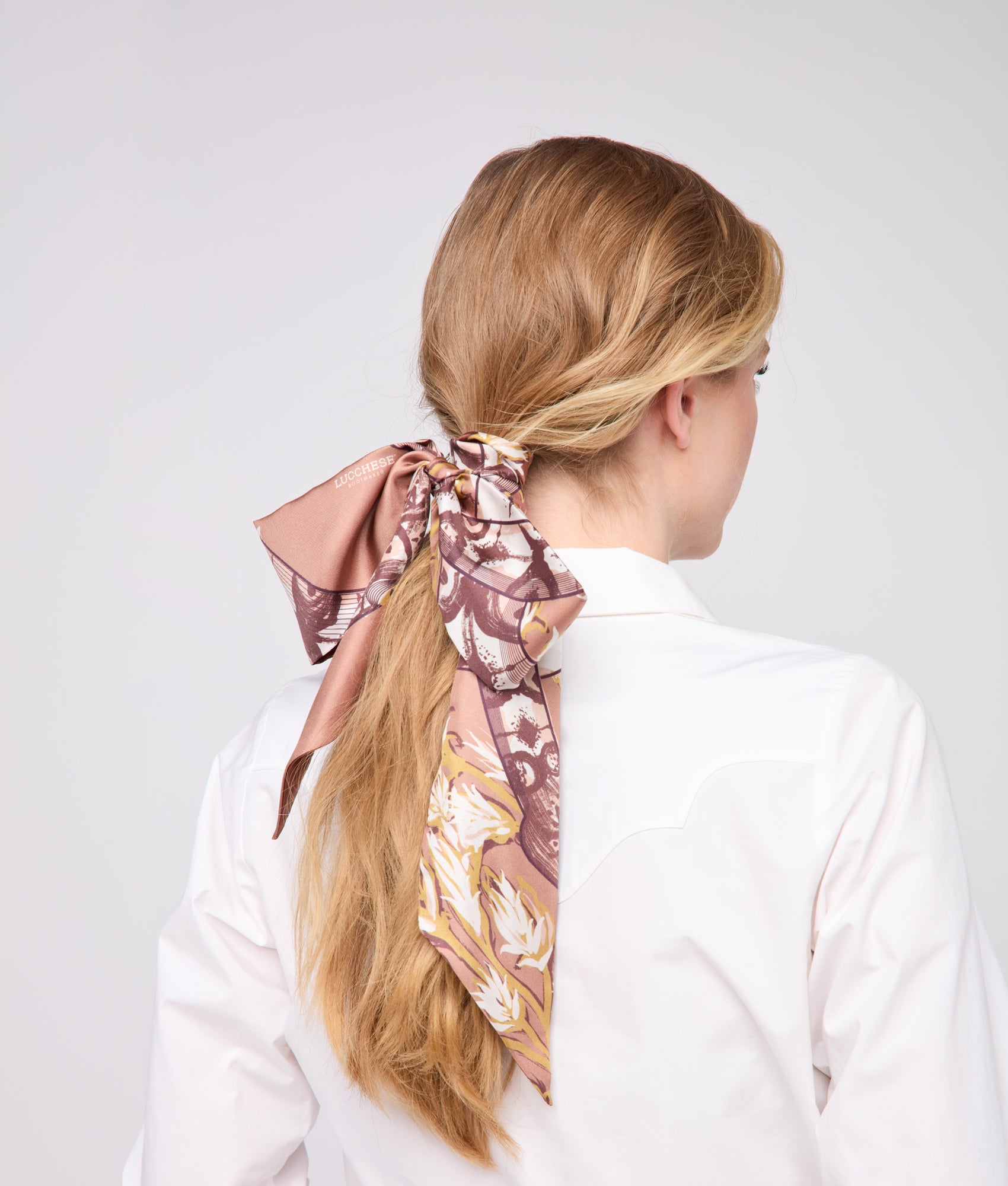 The Diamondback Twilly showcases a geometric snake design through silk. This versatile piece features intricate patterns that evoke a sense of mystery and allure. making it perfect for adding a bold touch to any outfit. Whether tied around your neck. wrapped around a bag. or styled in your hair. the Diamondback Twilly offers endless possibilities.