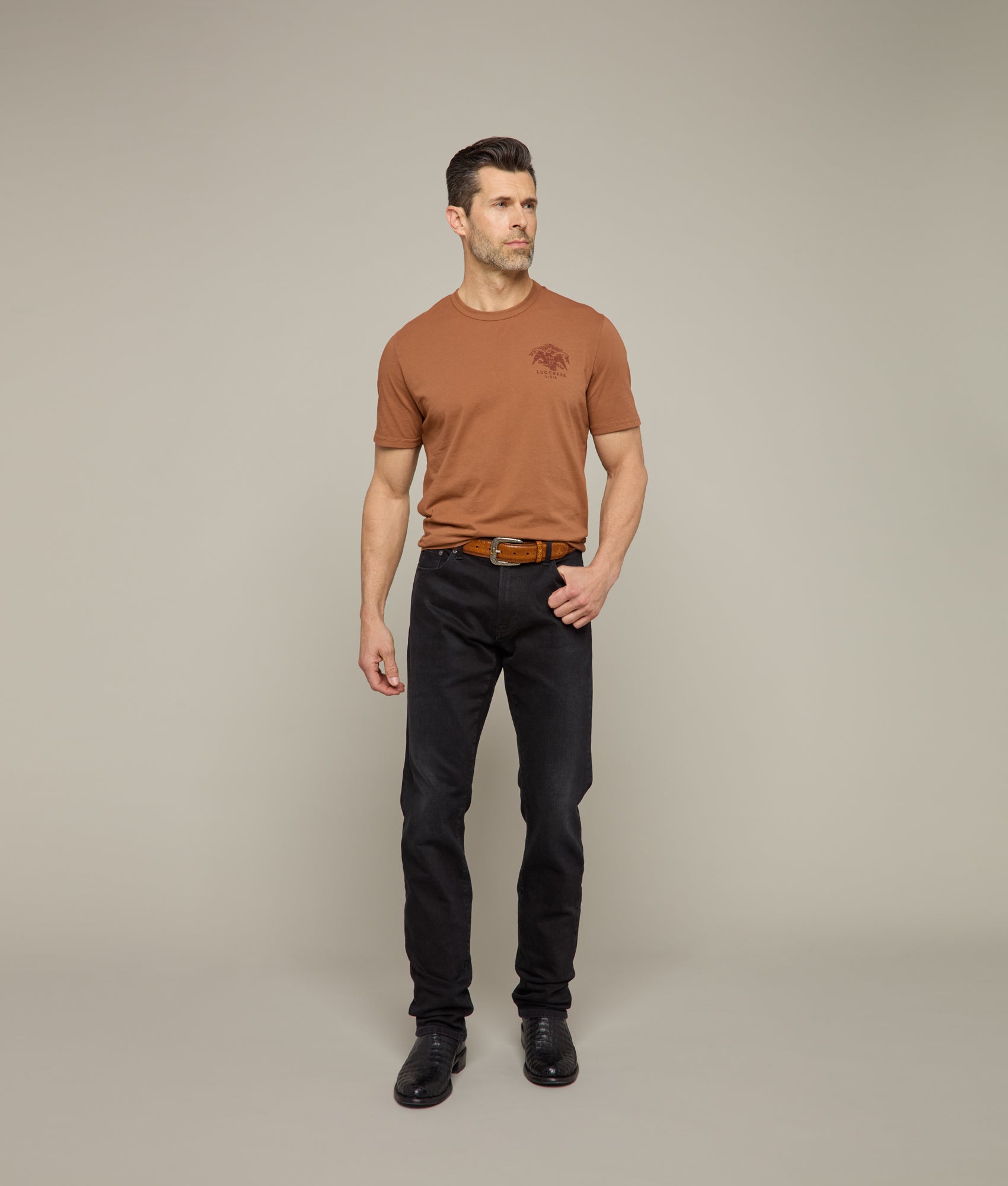 Crafted from 100% Pima Cotton. known for its silky softness and durability. this shirt features a striking Eagle Stamp graphic that evokes a sense of American pride and timeless style. The grainy print adds to its natural rugged nature. Designed and made in the USA. this tee represents both craftsmanship and heritage. Perfect for those who appreciate both design and quality. the Eagle Stamp Tee is more than just a piece of clothing??it’s a statement.