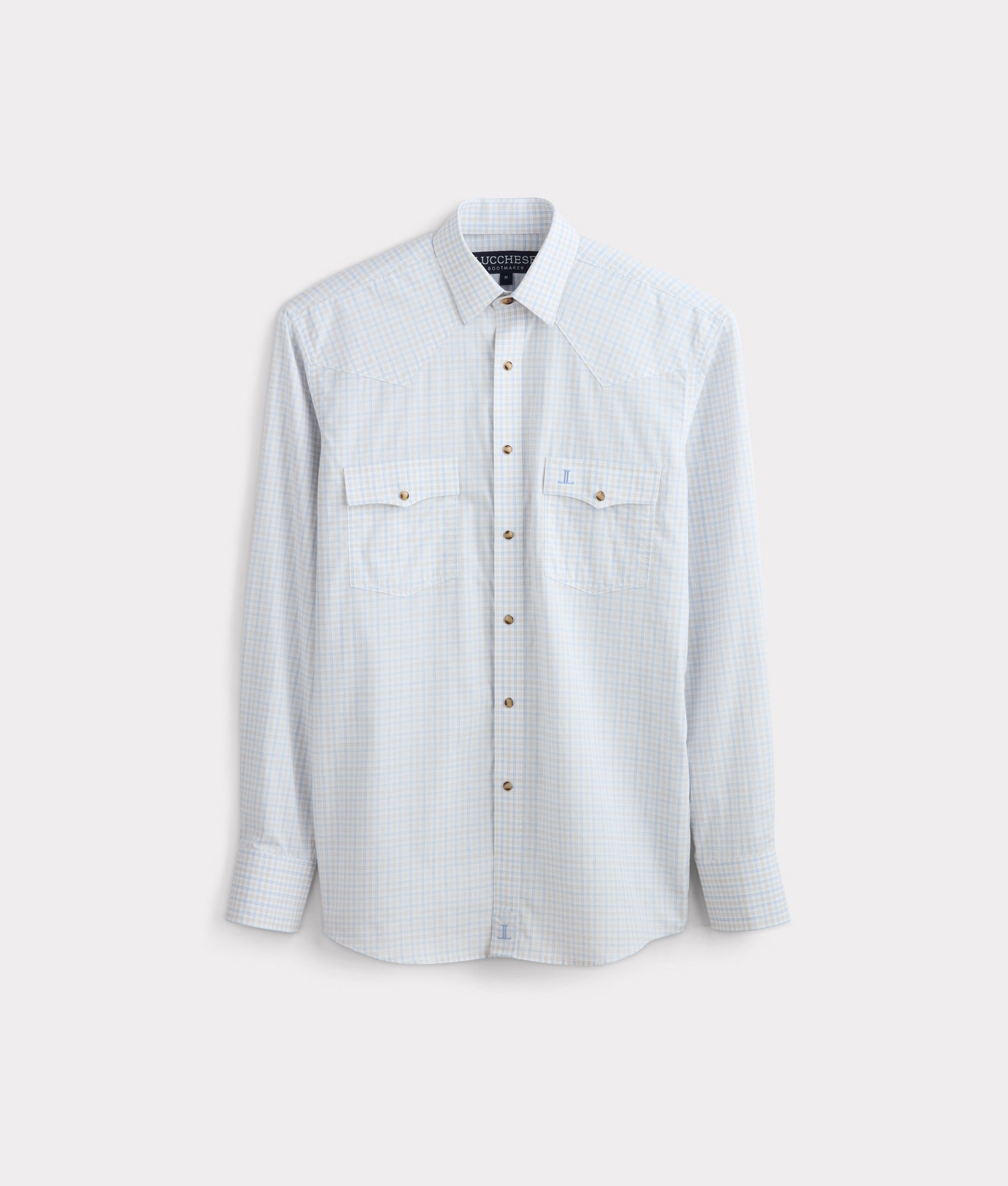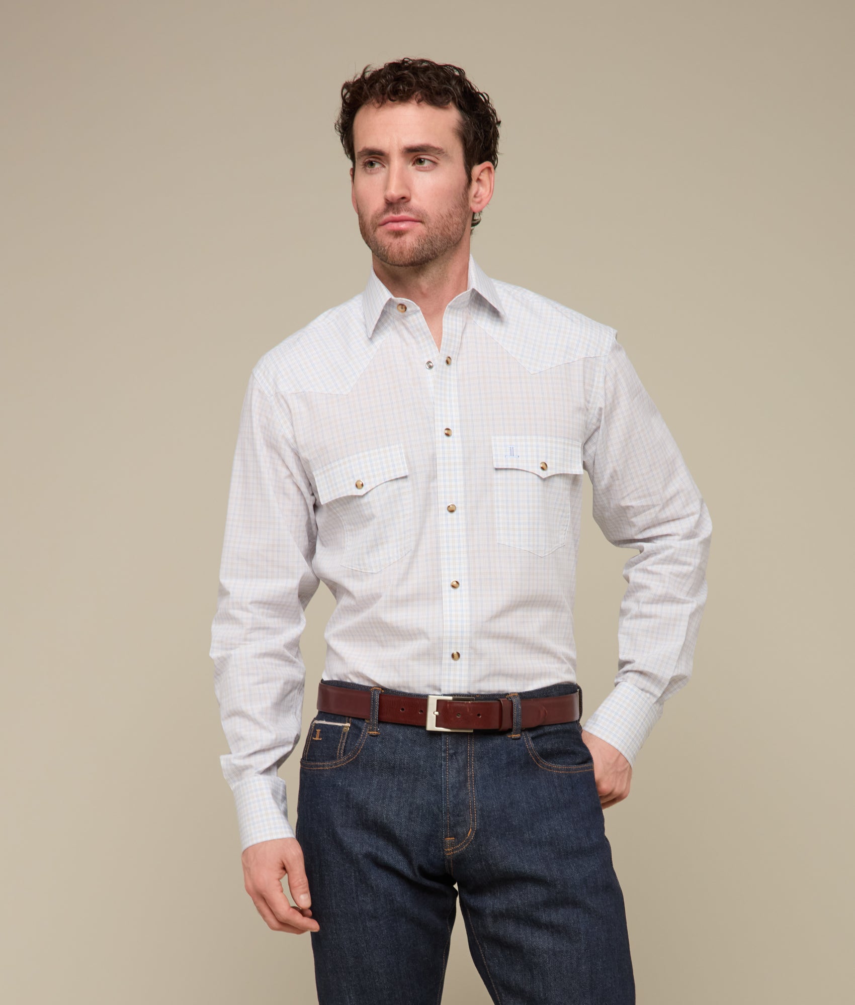 Named for our El Paso factory. this rugged. cotton western shirt features a cowboy yoke in front and back with a subtle. embroidered mirrored-L emblem on the left pocket and lower placket. Classic cowboy fit.
