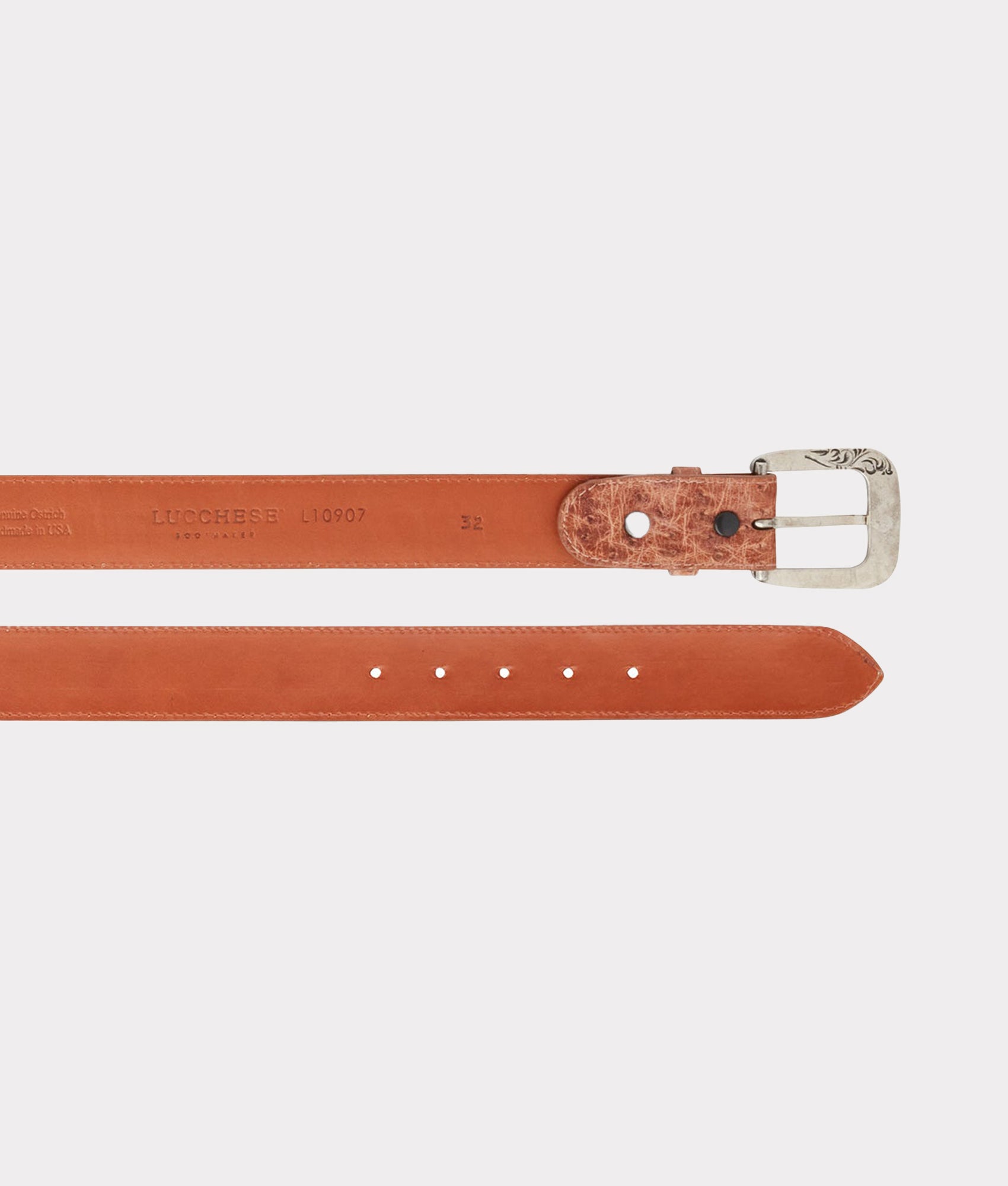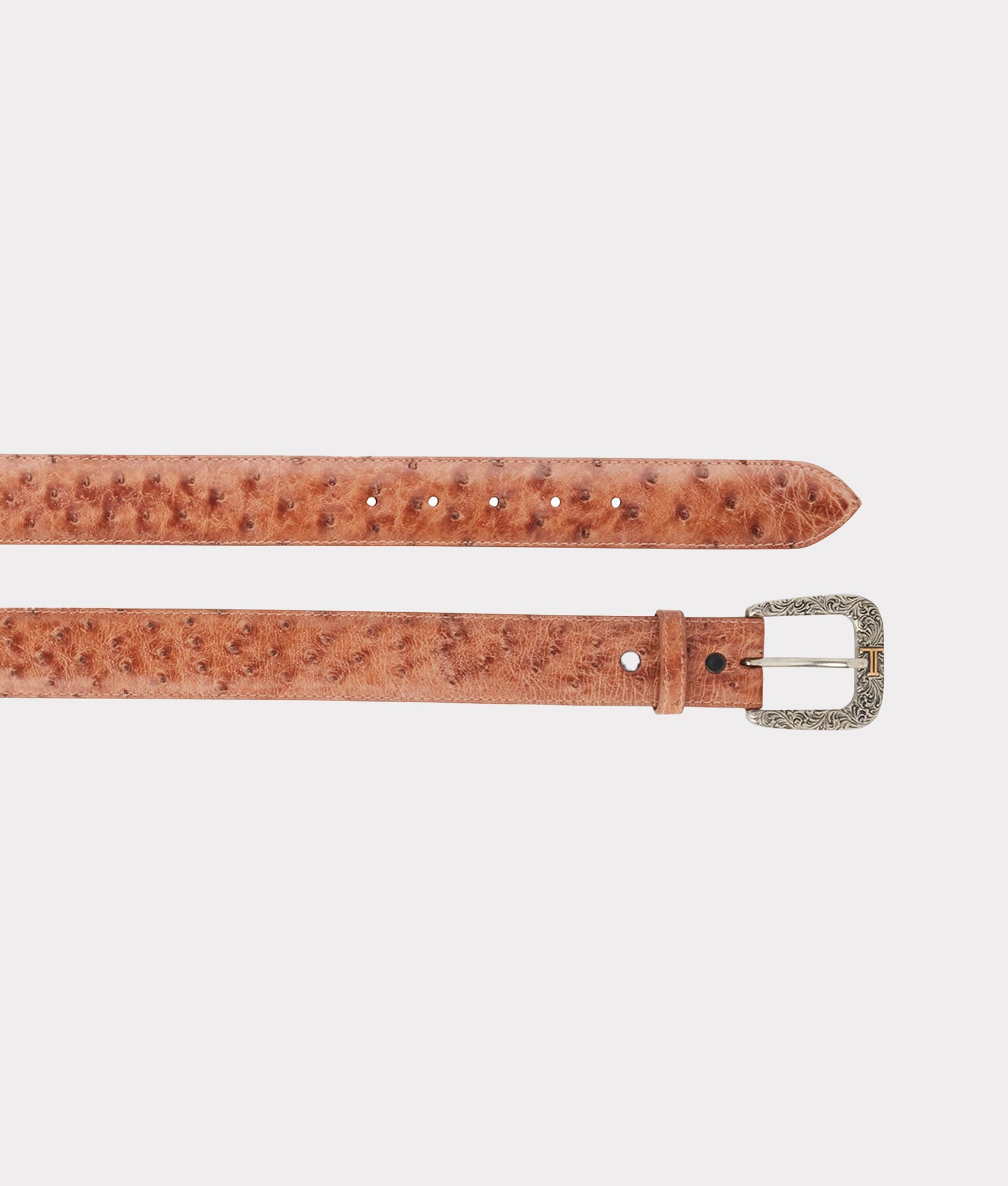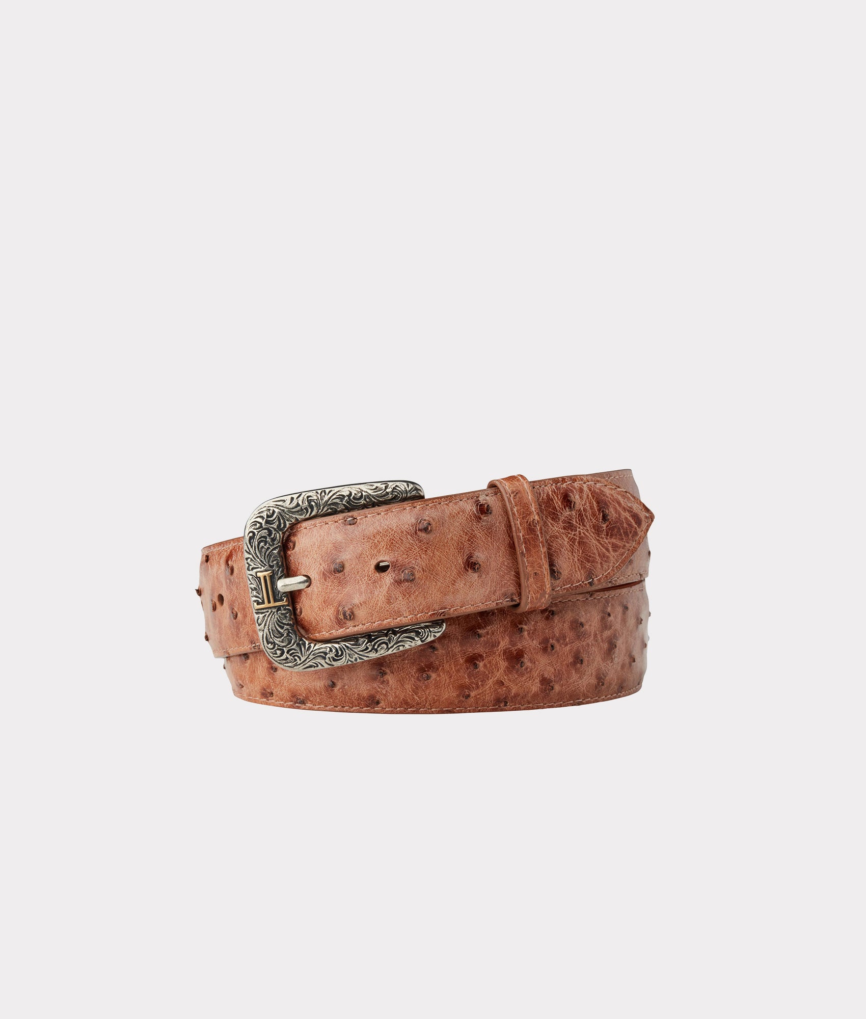 Lucchese’s exotic belt made with full quill ostrich leather. The belt’s full quill ostrich leather is complemented by an ornate silver plated buckle giving it the ultimate Western touch. making it versatile. handsome and stylish. This belt was designed to be worn with matching full quill ostrich boots. but can also be paired with jeans or a suit.