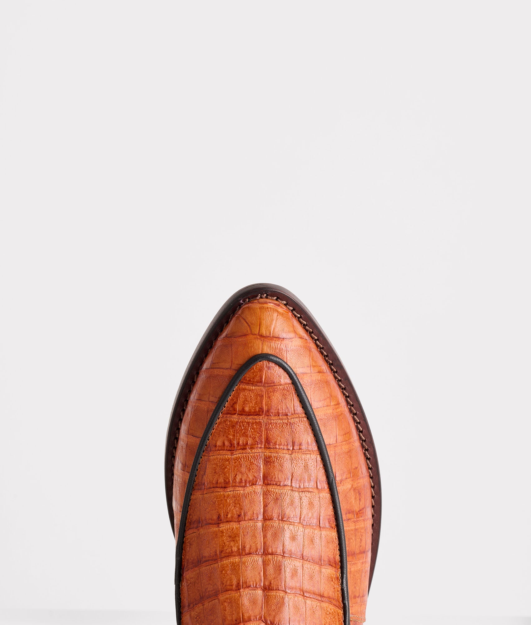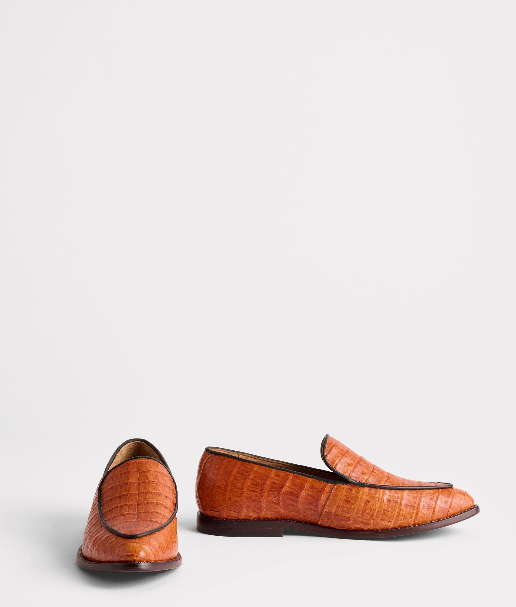 Karmen is a vintage-style loafer handmade from caiman leather. A Western look without the quarters. this shoe offers a seamless transition from saddle to city. Slip into Karmen after a long day in the pasture or before a quick trip to the store.?