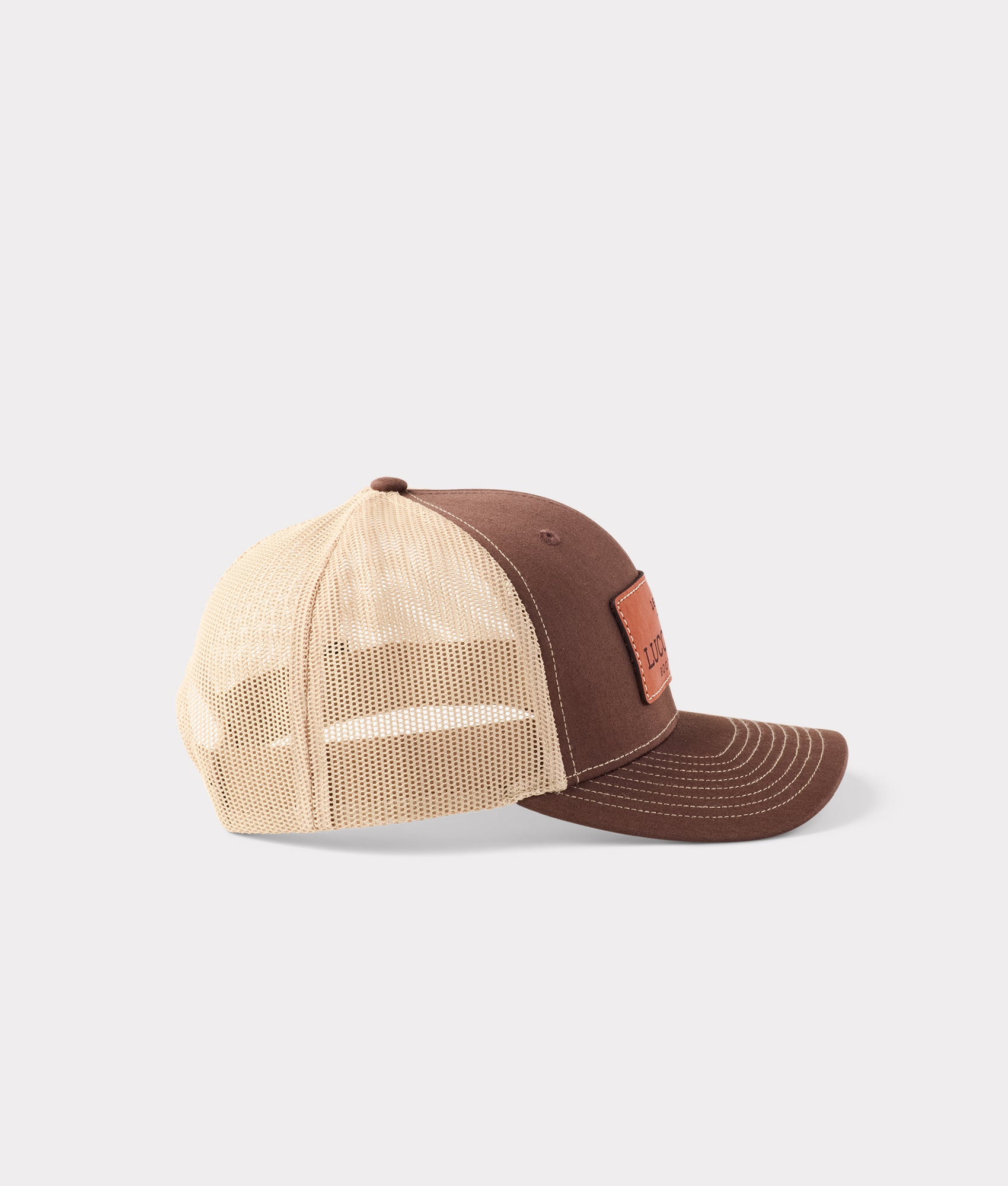 The Lucchese Leather Patch Cap has breathable mesh and an adjustable snap closure. Lucchese Bootmaker logo patch on front. One size fits most.
