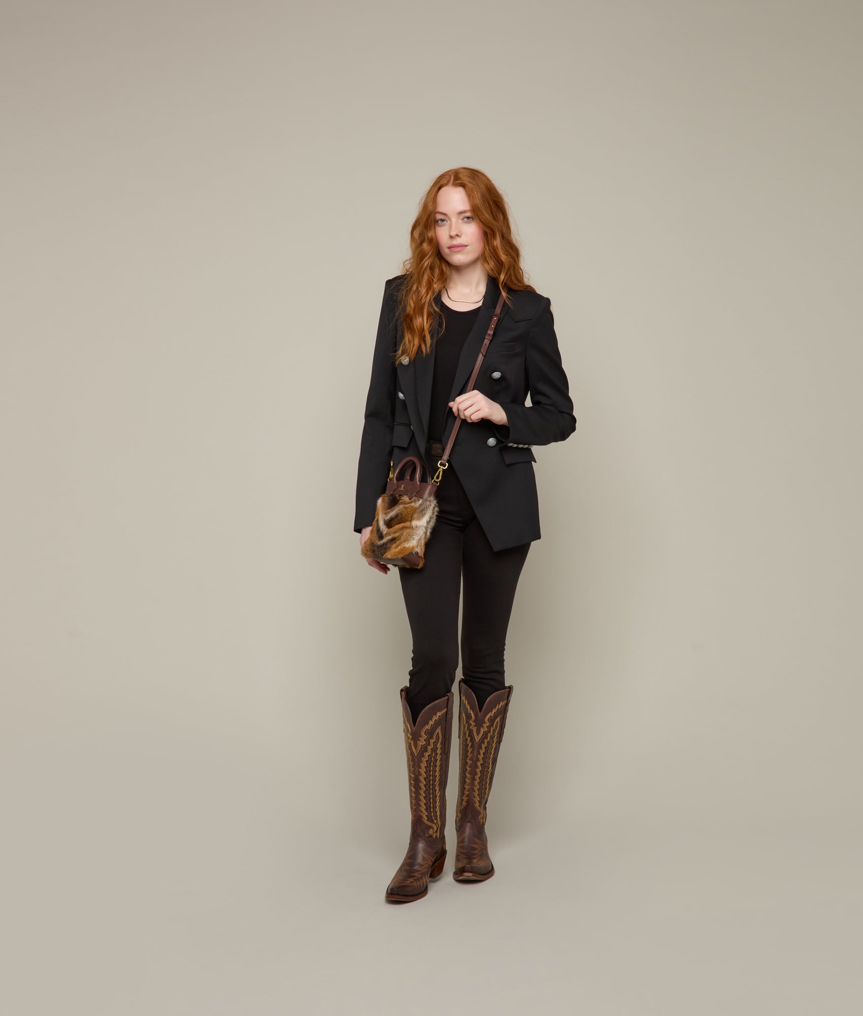 Handcrafted from Italian?Fox fur. the premium Mini Lola Fur Shopper is handmade from traditional leather techniques – exotic elegance with fashion-forward flair. This fun bag is crafted from the softest pelts that Lucchese offers. A fresh take to a traditional design elevates the cowgirl repertoire.