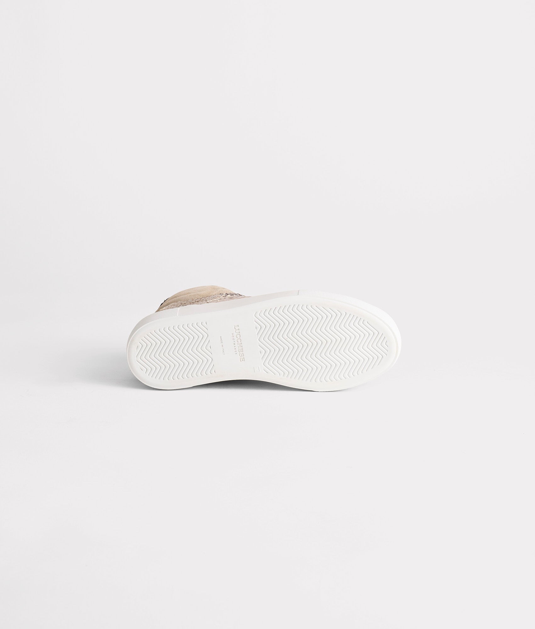 Mosaico means mosaic in Italian??a name that perfectly captures the persona of this Italian handcrafted sneaker. Like a mosaic. where individual pieces come together to create a breathtaking whole. the Mosaico High-Top Sneaker unites every detail??material. texture. and form??into a wearable work of art. Crafted by master artisans. this women’s sneaker is crafted from genuine python. with each pair offering a unique pattern and cut. The high-top silhouette is a statement. laced for a personalized fit and grounded by a durable rubber sole for all-day comfort. Handmade in Italy.