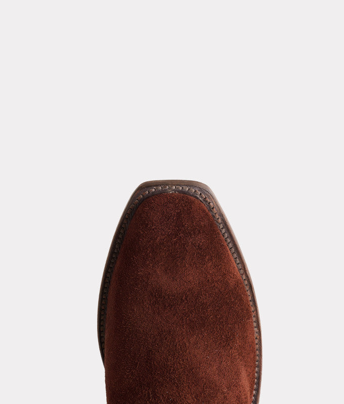 Part of Chris Stapleton’s Volume II collection. the Old Friend pays homage to Chris’ heroes. Rugged in nature and vintage in design. the Old Friend is a piece of the songwriters’ uniform. This Western silhouette bridges the gap between grit and traditionalism with silky Italian suede and classic Mule Ear pull straps – a Torero side seam lends visual texture to a timeless boot. Handmade in Texas.