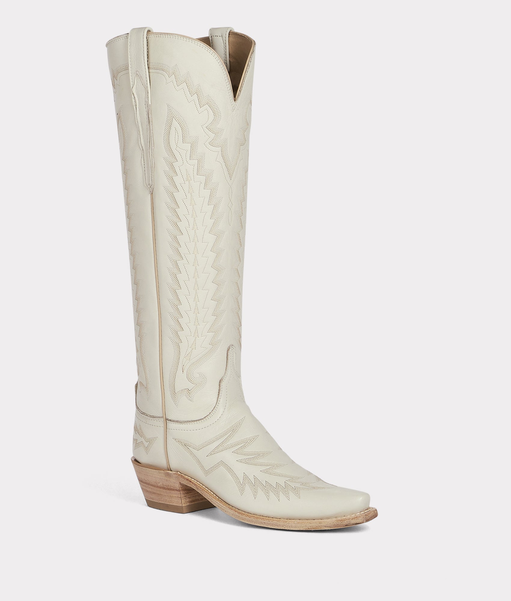 Our No. 1 bestselling boot for women. Priscilla walks an elegant line between timeless classic and cowgirl chic. The vintage-inspired Tioga stitch pattern harks back to yesteryear. but Priscilla is a boot built for today. This knee-skimming. pull-on silhouette handcrafted from supple Bovine leather deserves the spotlight under dresses and over jeans. Handmade in Texas.
