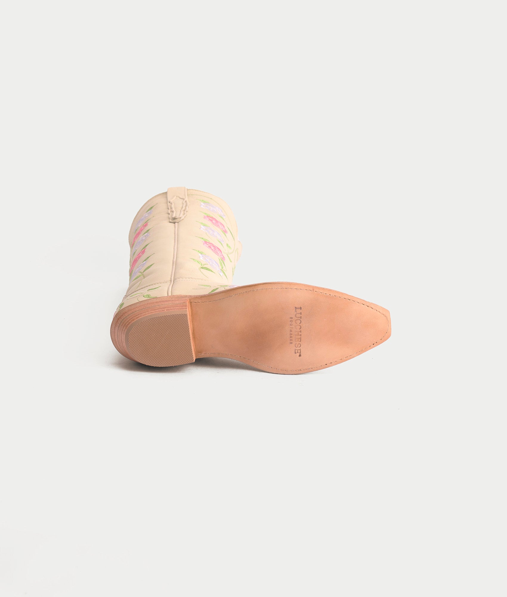 There’s something special about Priscilla in Bloom ?C she’s nostalgic. She’s the feeling you got when you were a kid. lying in a field. watching clouds drift by with your grandma. Nothing captures the essence of Spring quite like pastel-petaled roses on soft bovine leather. Sure. Sundays. sundresses. and sunflowers are fun and all. but nothing compares to the feeling you get when you share a dance under the sun in your favorite pair of boots. Our world-renowned Lucchese artisans have painstakingly hand-cut. hand-lasted. and hand-finished Priscilla in Bloom so that she could stand the test of time. Every step taken is with grace and beauty. Handmade in Texas.