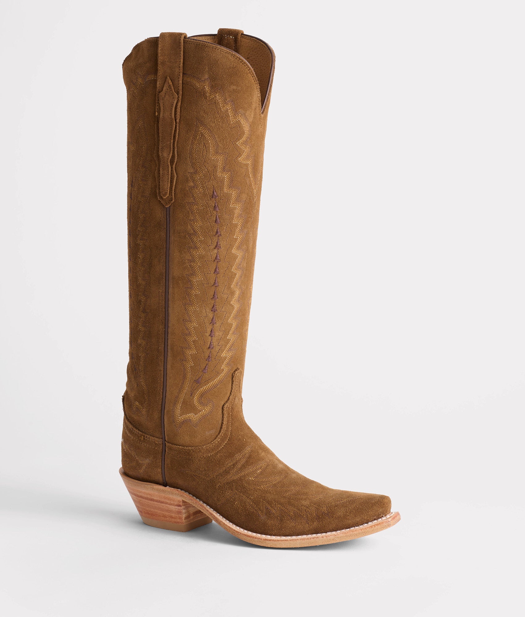Our No. 1 bestselling boot for women. Priscilla walks an elegant line between timeless classic and cowgirl chic. The vintage-inspired Tioga stitch pattern harks back to yesteryear. but Priscilla is a boot built for today. This knee-skimming. pull-on silhouette handcrafted from Maracca suede deserves the spotlight under dresses and over jeans. Handmade in Texas.