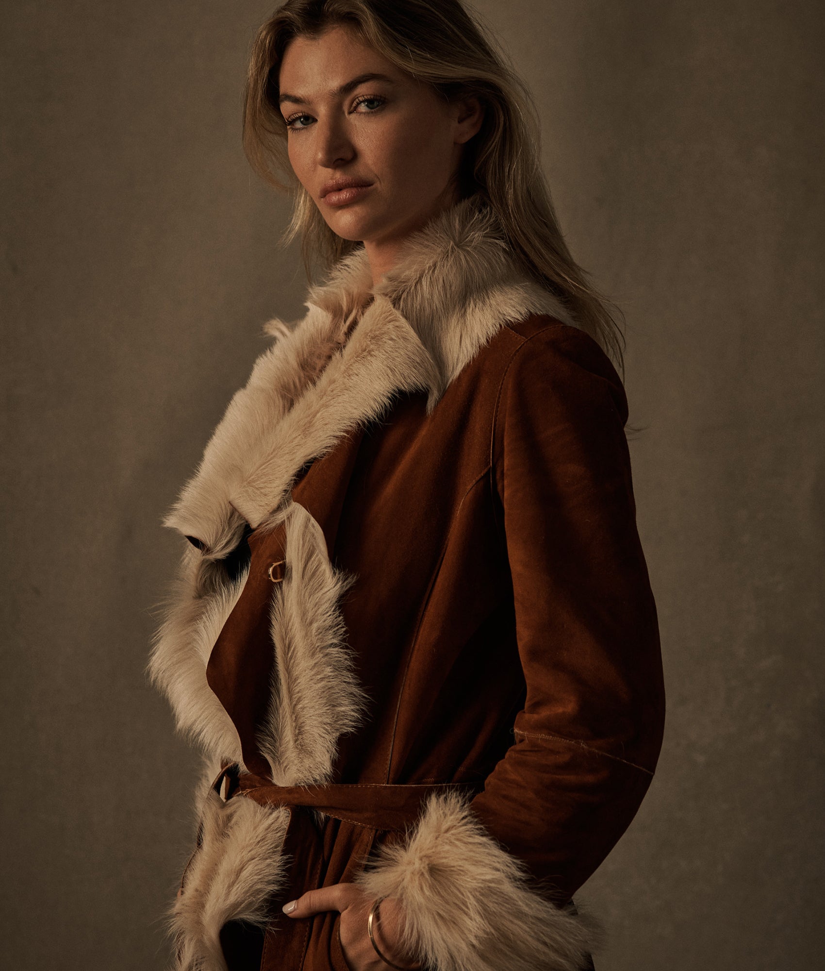The Supreme Kid Coat is the ultimate western statement piece. Crafted from Goat Kidskin. this coat features an adjustable sleeve with a turnback cuff and a double unstructured edge that flows gracefully with you.?