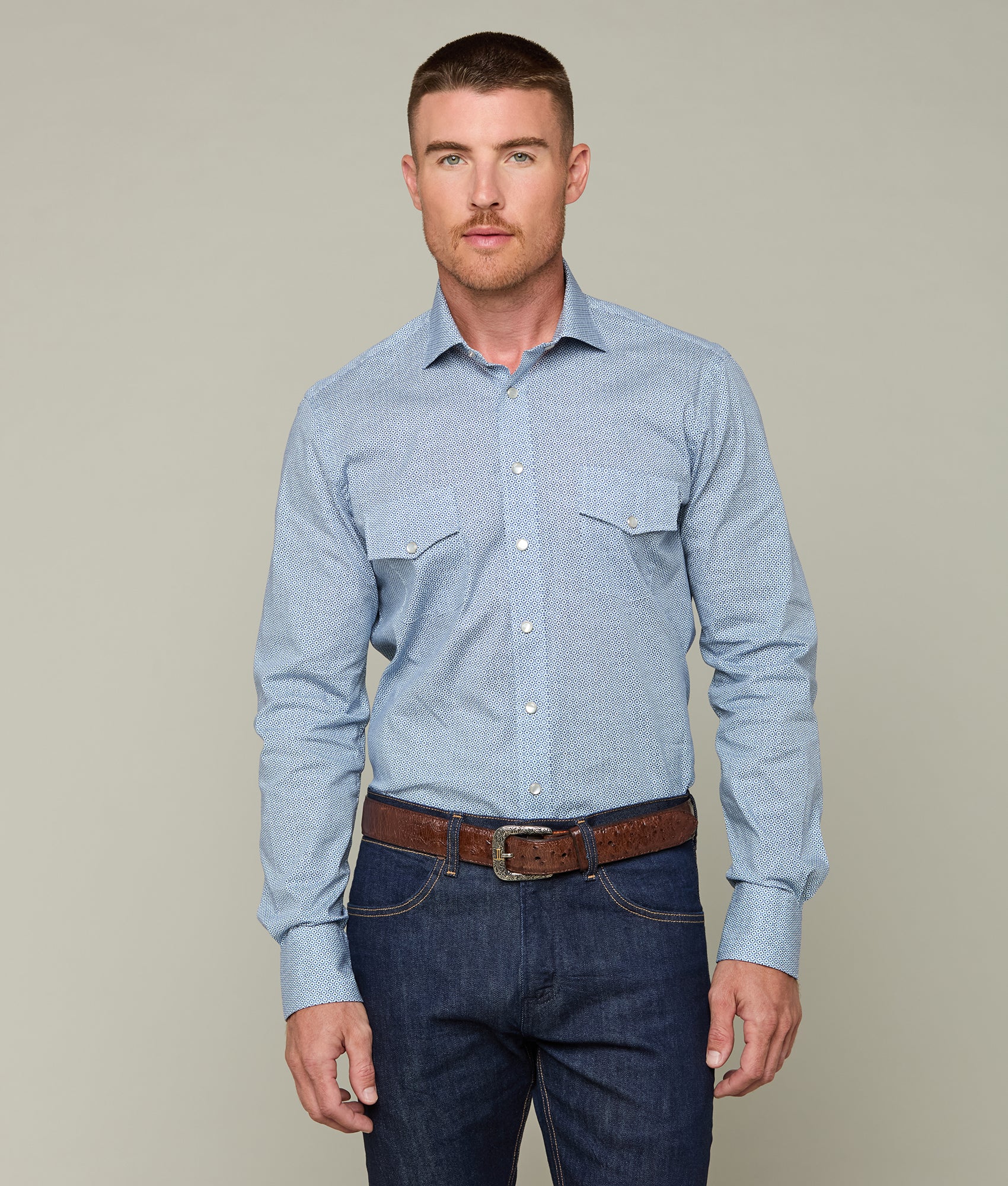 The Telluride is a fresh take on Lucchese’s western shirts. Rugged yet refined. this piece is made from the finest textured cotton twill for comfortable all day wear. Silky to the touch and beautiful to the eye. the Telluride is a seasonal snap shirt that pairs perfectly with all Lucchese boots and casual footwear for a day in the saddle or a night in the town.