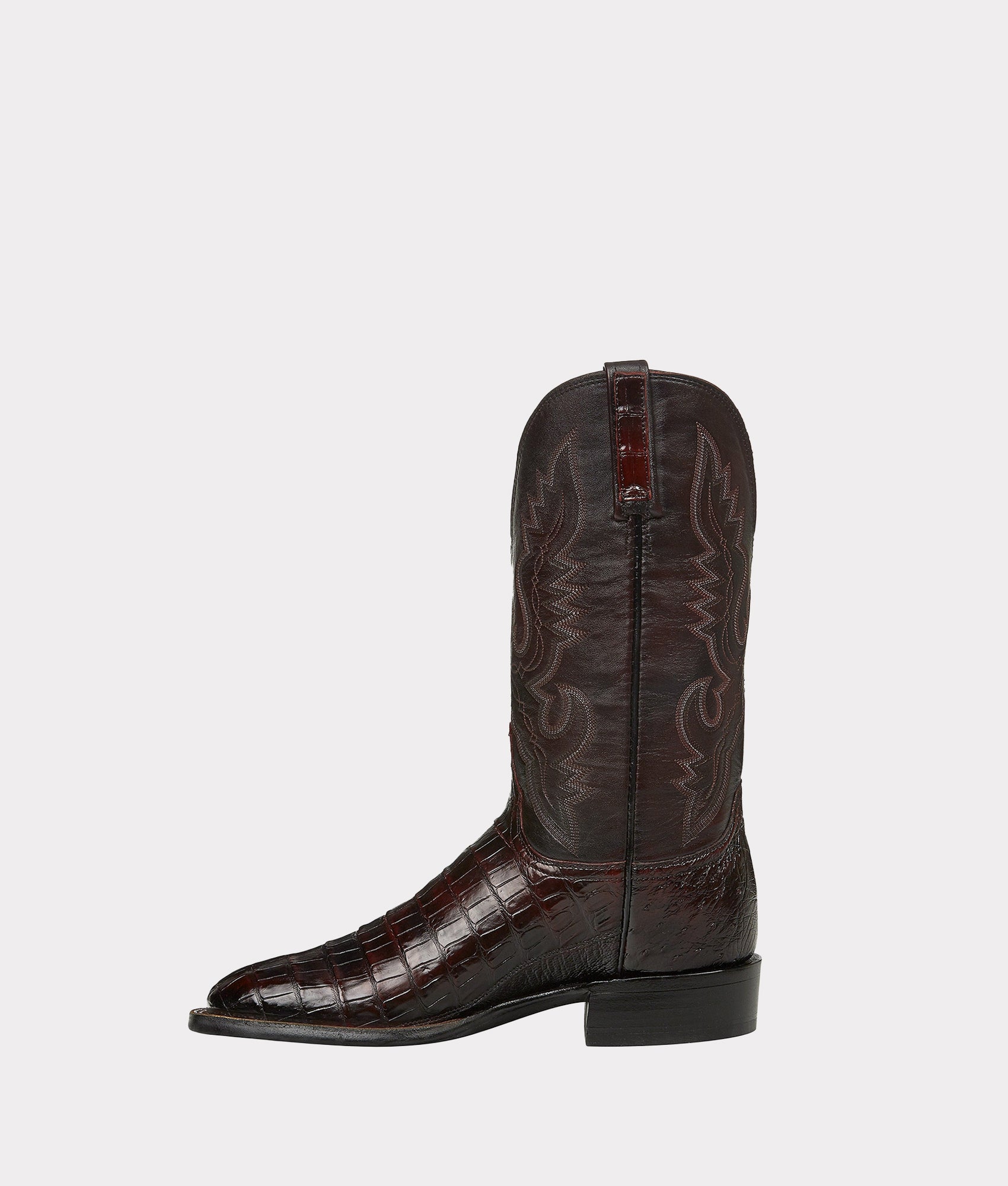 Inspired by the Westward Expansion and 19th-century pioneers. the Trent is a horseman silhouette intended to roam the frontier. Constructed from Smooth ostrich and Caiman Belly. this winged-vamp horseman radiates rustic poise. Every step taken with the Trent is a step back in time. Handmade in Texas.