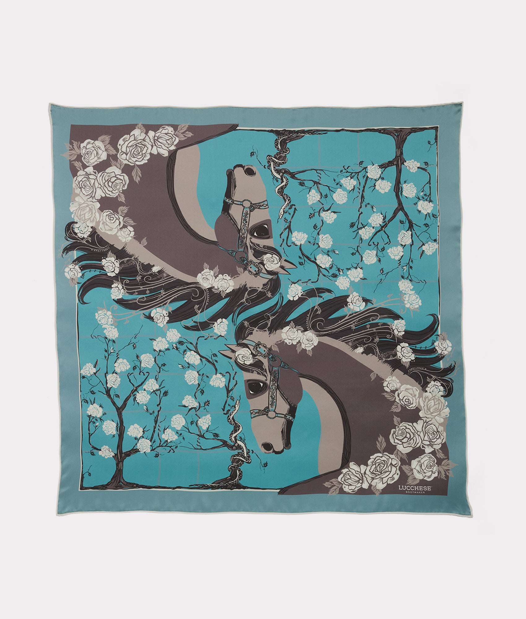 Bloom with beauty. Rooted in our equestrian and cavalry heritage. the Cavalry Rose Scarf offers not only the highest quality silk. but endless fashion-forward getups for the regal bearing men and women. The scarf explores fully-blossomed roses on a tree entangled with a serpent. Rendered to perfection. the reds and oranges add dramatic flair to any ensemble. Get creative – around your neck. ribboned on a bag. or hanging on a wall. the Cavalry Rose Scarf is meant to be seen.?