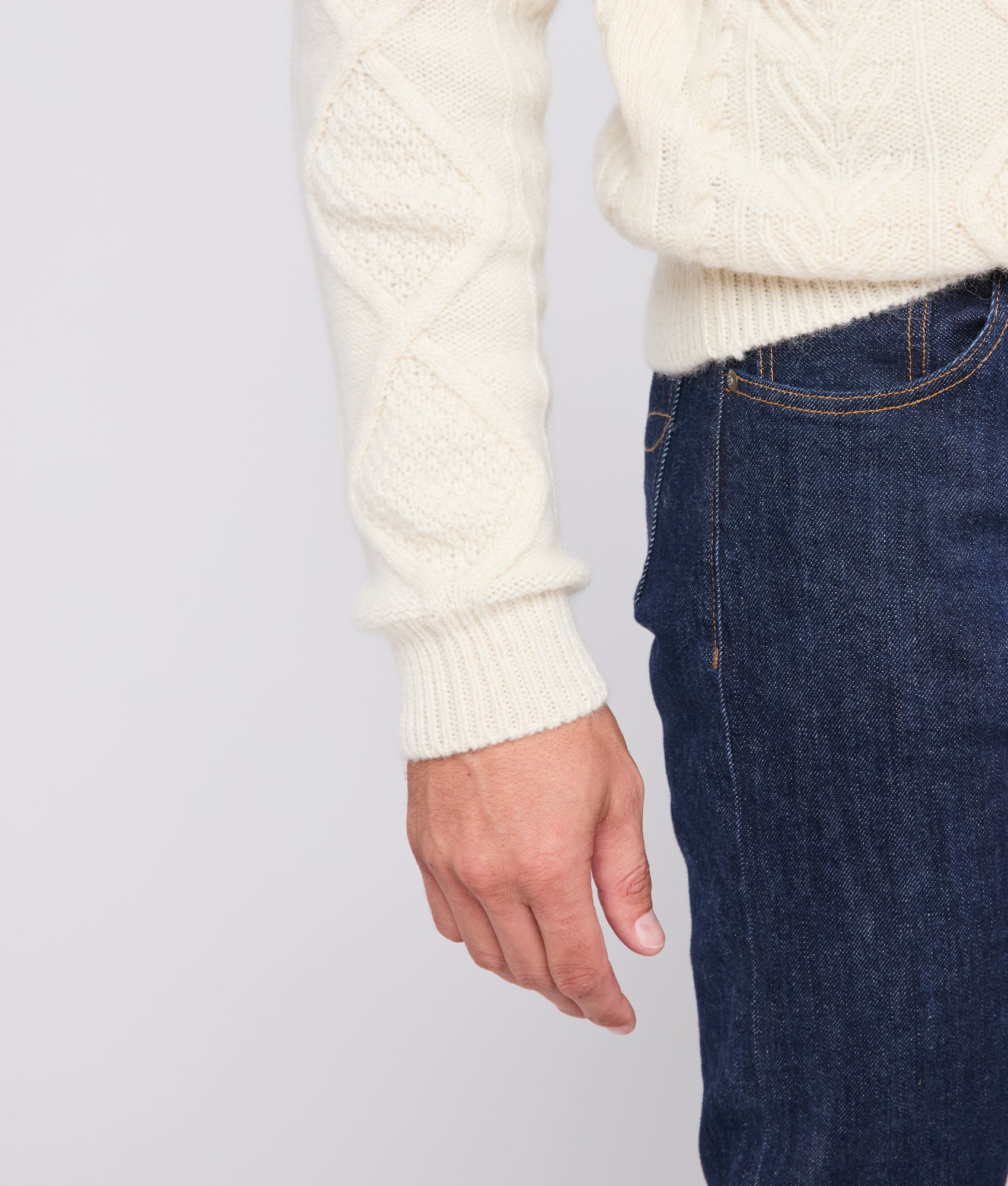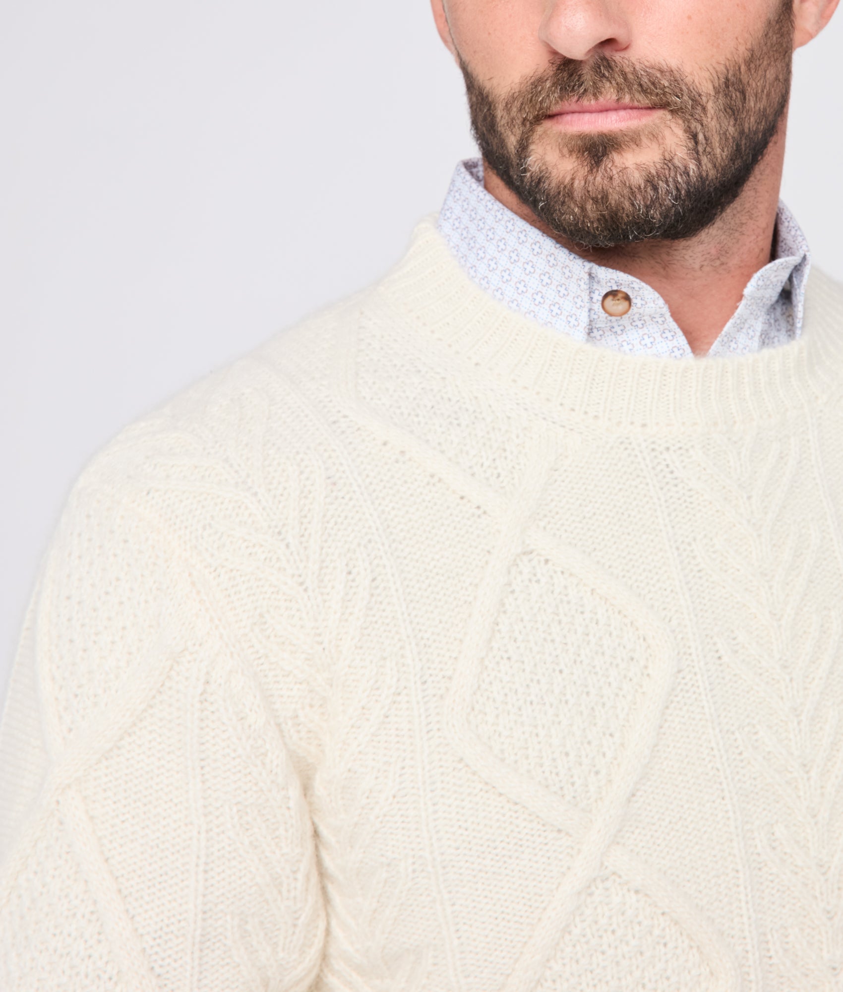 Christopher is a beacon of warmth and tradition. With its sculptural cable-knit pattern and evergreen silhouette. the Christopher Sweater brings the fisherman knit heritage into the world of refined Italian craftsmanship.