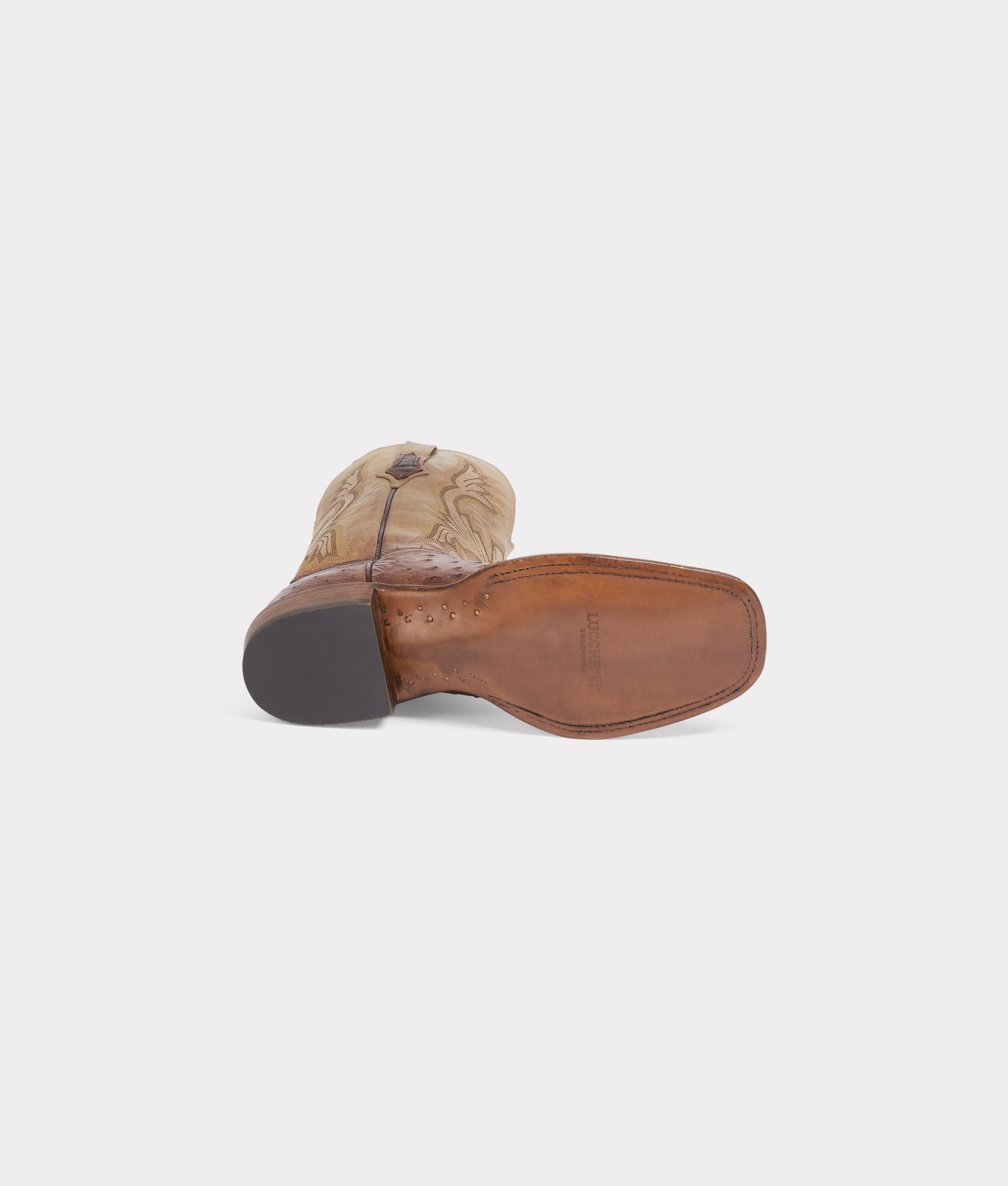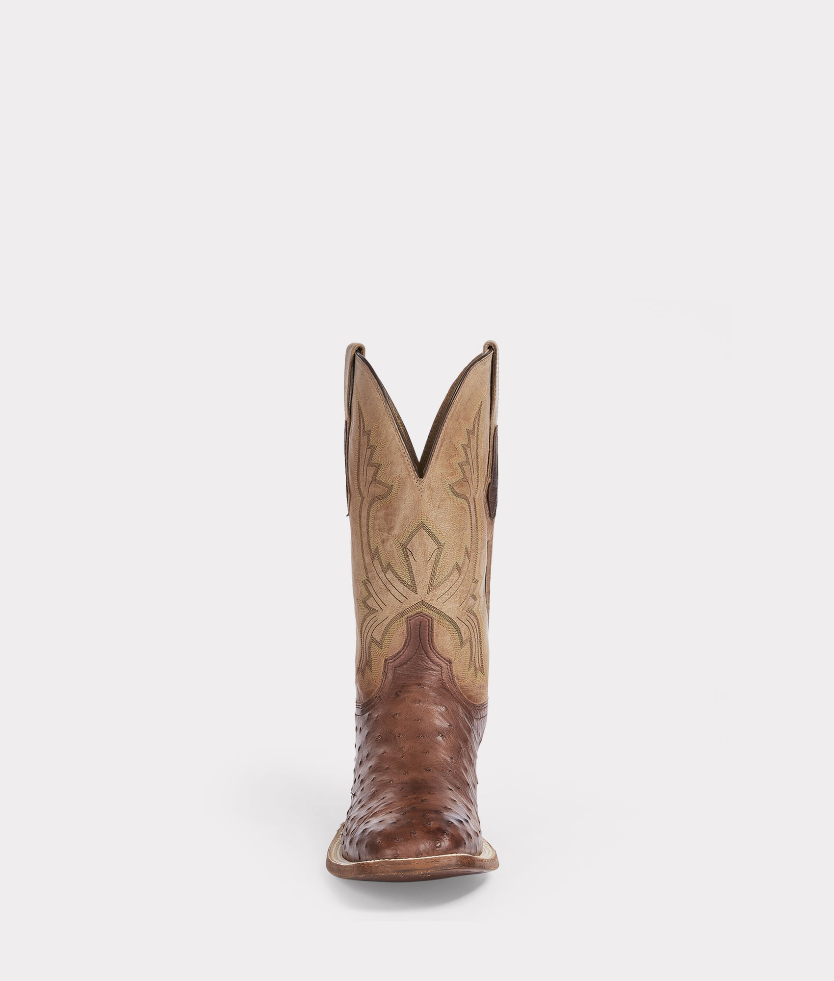 The Cliff is an all day every day horseman in jaw-dropping tones of Full Quill ostrich and Mad Dog goat leather. A tonal 10-row stitch pattern and a hand stained finish call for a toast and celebration to decades of a perfected craft. Handmade in Texas.