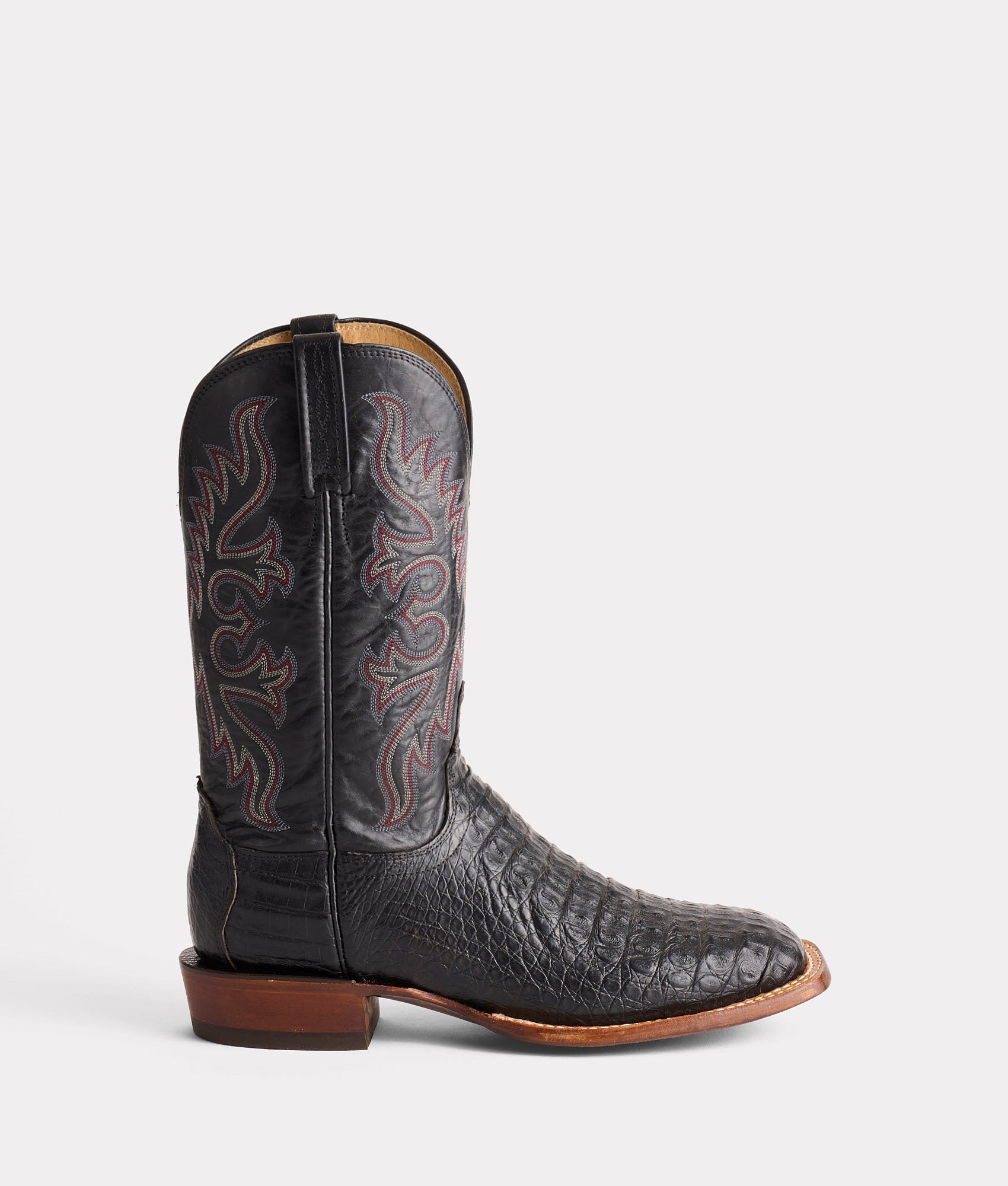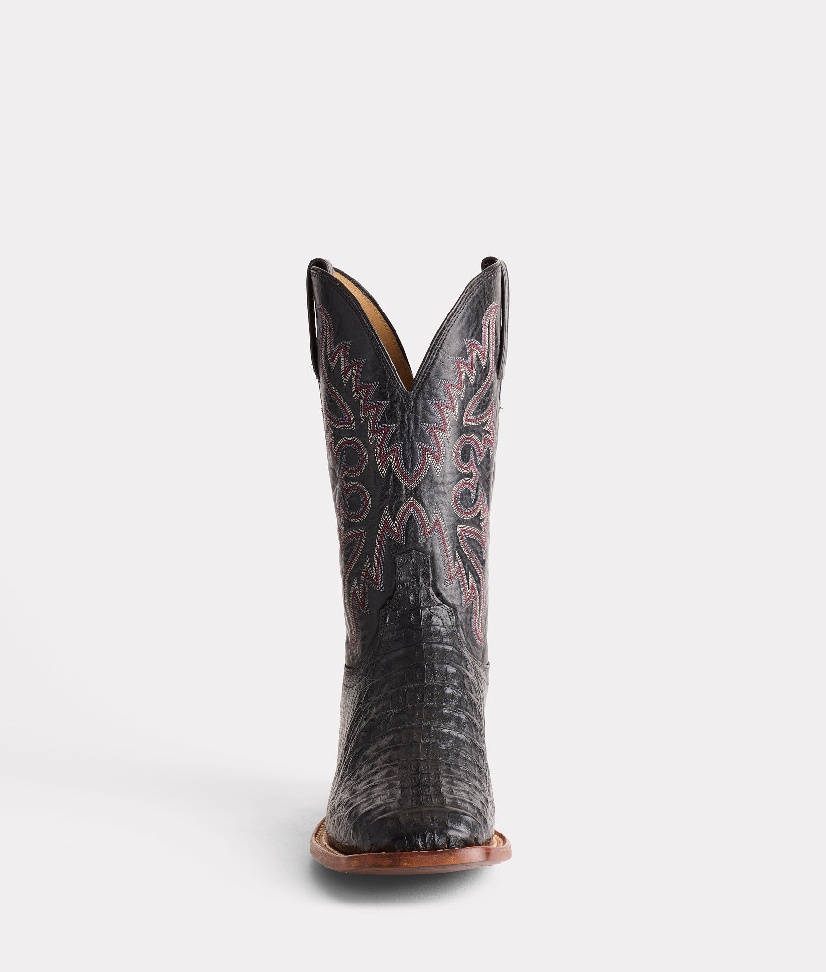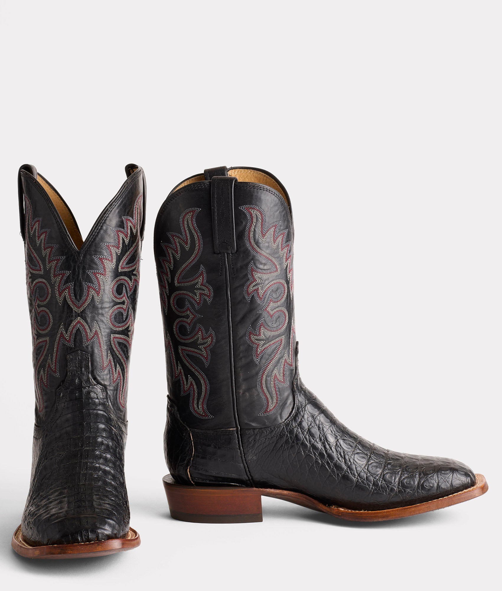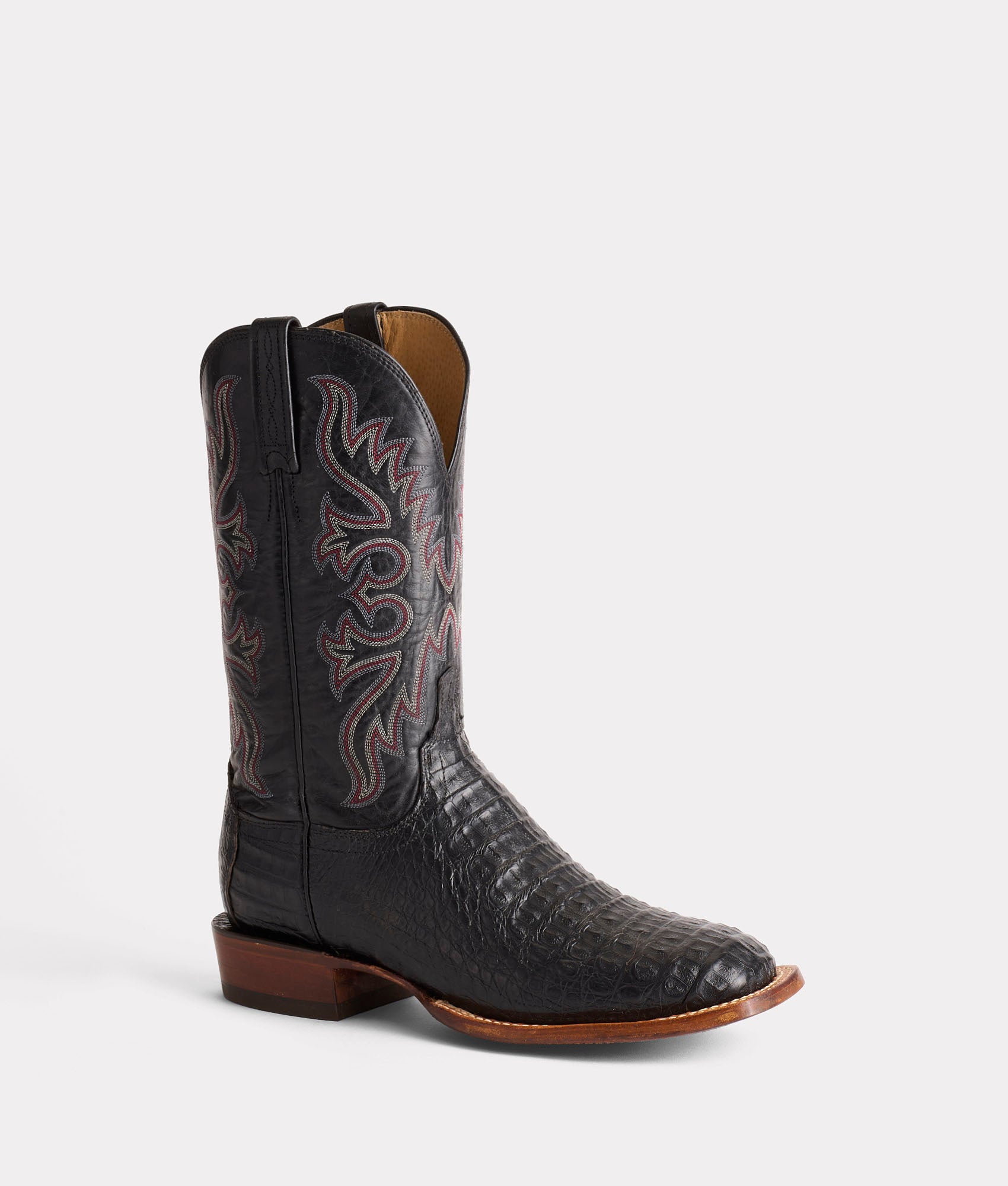 This exotic Lucchese horseman bears the name and legacy of Fort Fisher – a 19th-century Texas Ranger camp along the banks of the Brazos River. Crafted from hornback caiman leather and featuring a spur-ridge heel. the Fisher is a nod to the cowboys who roamed the American West. Handmade in Texas.