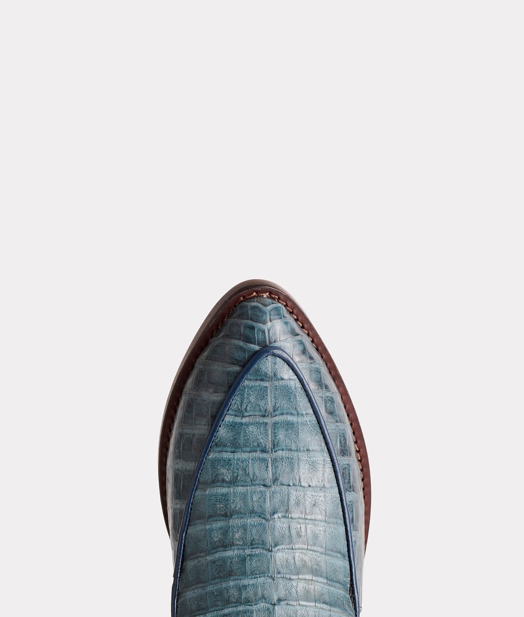 Karmen is a vintage-style loafer handmade from caiman leather. A Western look without the quarters. this shoe offers a seamless transition from saddle to city. Slip into Karmen after a long day in the pasture or before a quick trip to the store.?