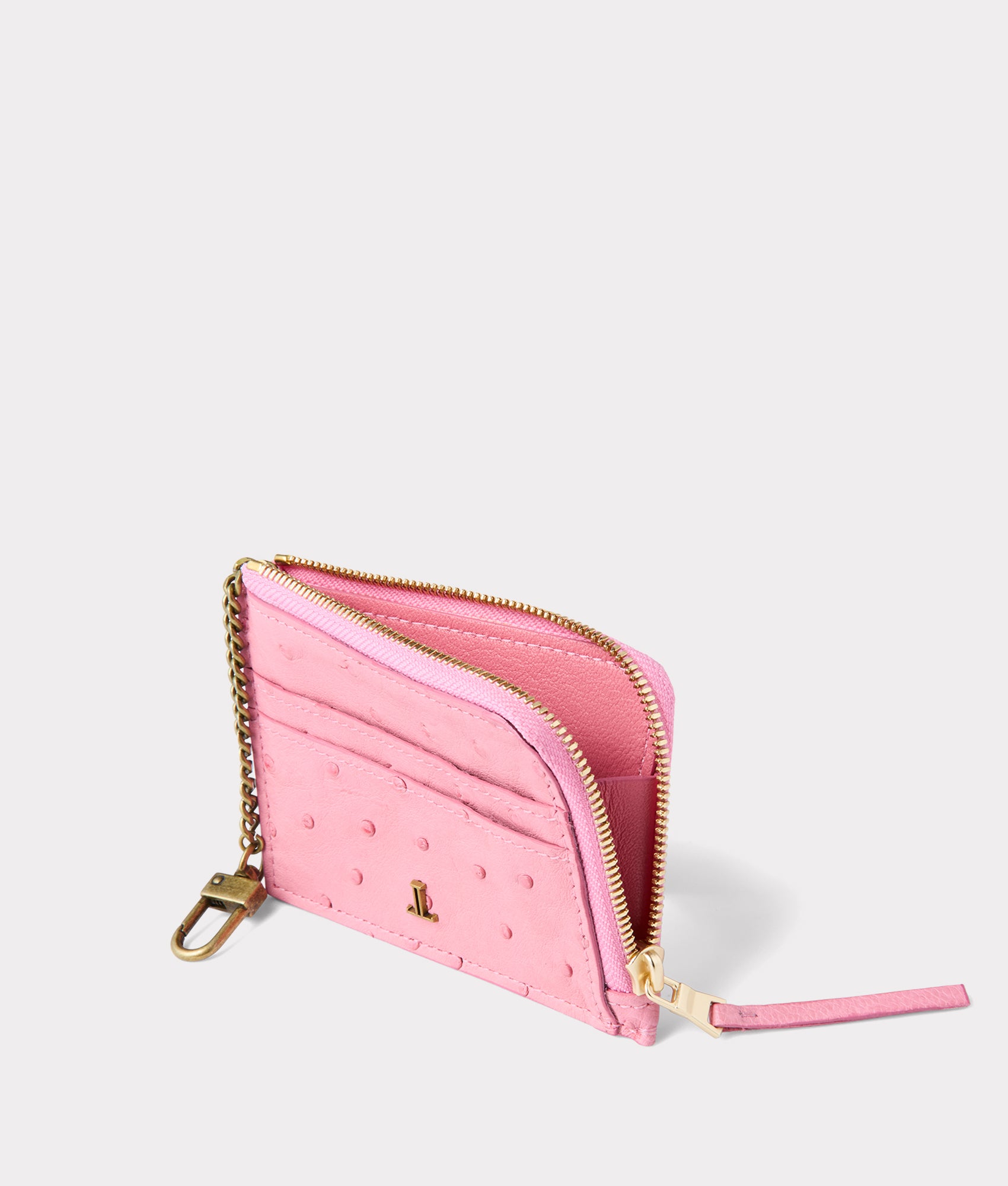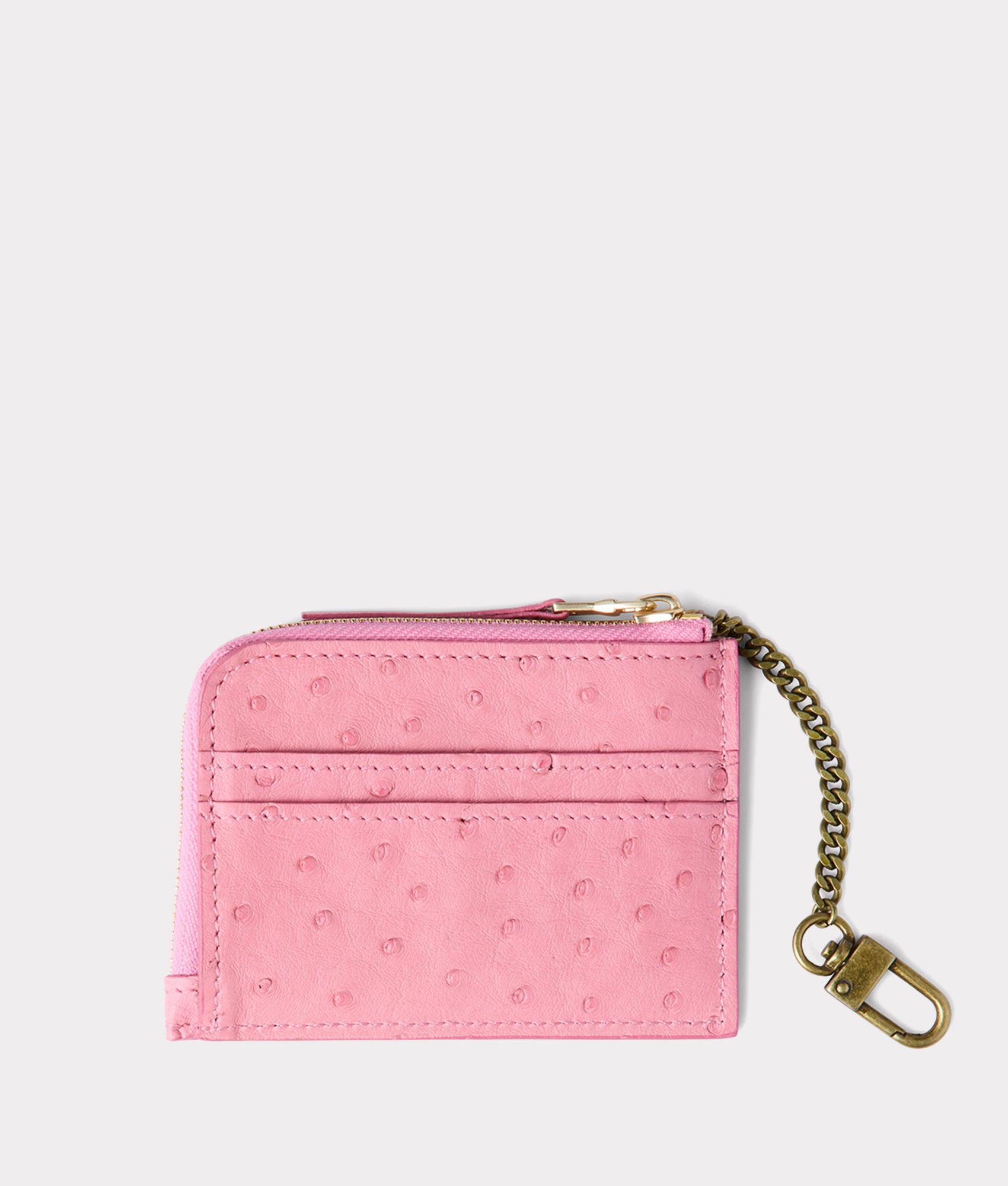 This luxurious keychain card case is crafted from premium ostrich leather. known for its distinctive texture and exceptional durability. The rich. patterned finish showcases the unique quill marks of the ostrich hide. adding an elegant touch of sophistication to your everyday essentials. Compact yet functional. this sleek accessory features a secure keyring for easy attachment to bags or belts. while providing ample space for cards. IDs. and cash. Its lightweight design makes it a perfect blend of style and practicality. ensuring your most important items are always within reach.