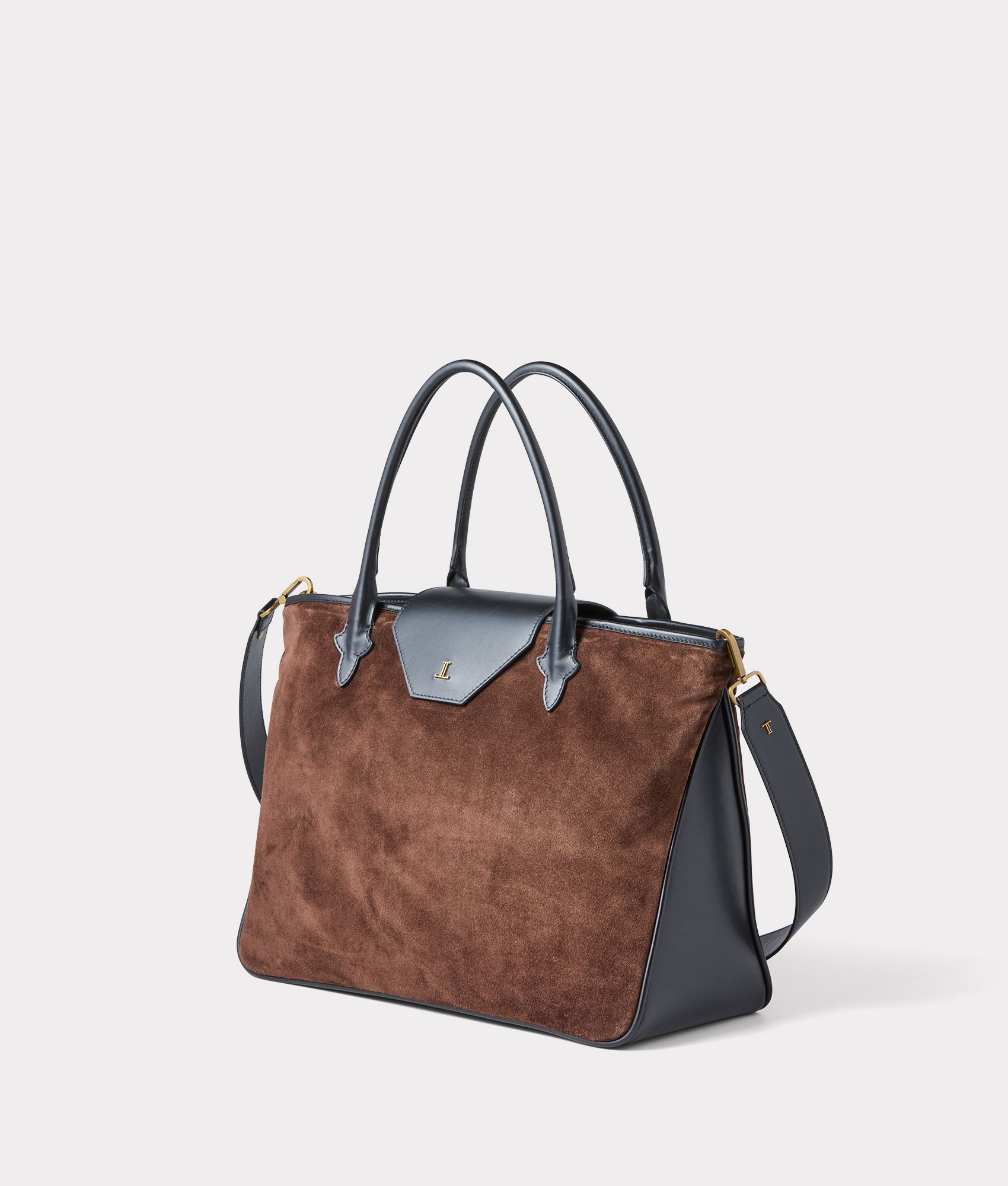 Intelligently designed with elevated style to hold all of your must-have essentials. the Large Roma Suede Tote is handcrafted from exquisite Italian Calf Suede. Accented with brushed gold hardware. the Italian Nappa trim features a top separated zipper that can be fully unzipped to fit a large laptop or folded down creating a shopper style tote. Carry by hand or on the shoulder with the matching strap. this carry-all travel tote is both versatile and functional. This Lucchese tote comes with a detachable insert that converts to a stylish crossbody bag. ultimately giving you 2 bags in 1. Handmade in Italy