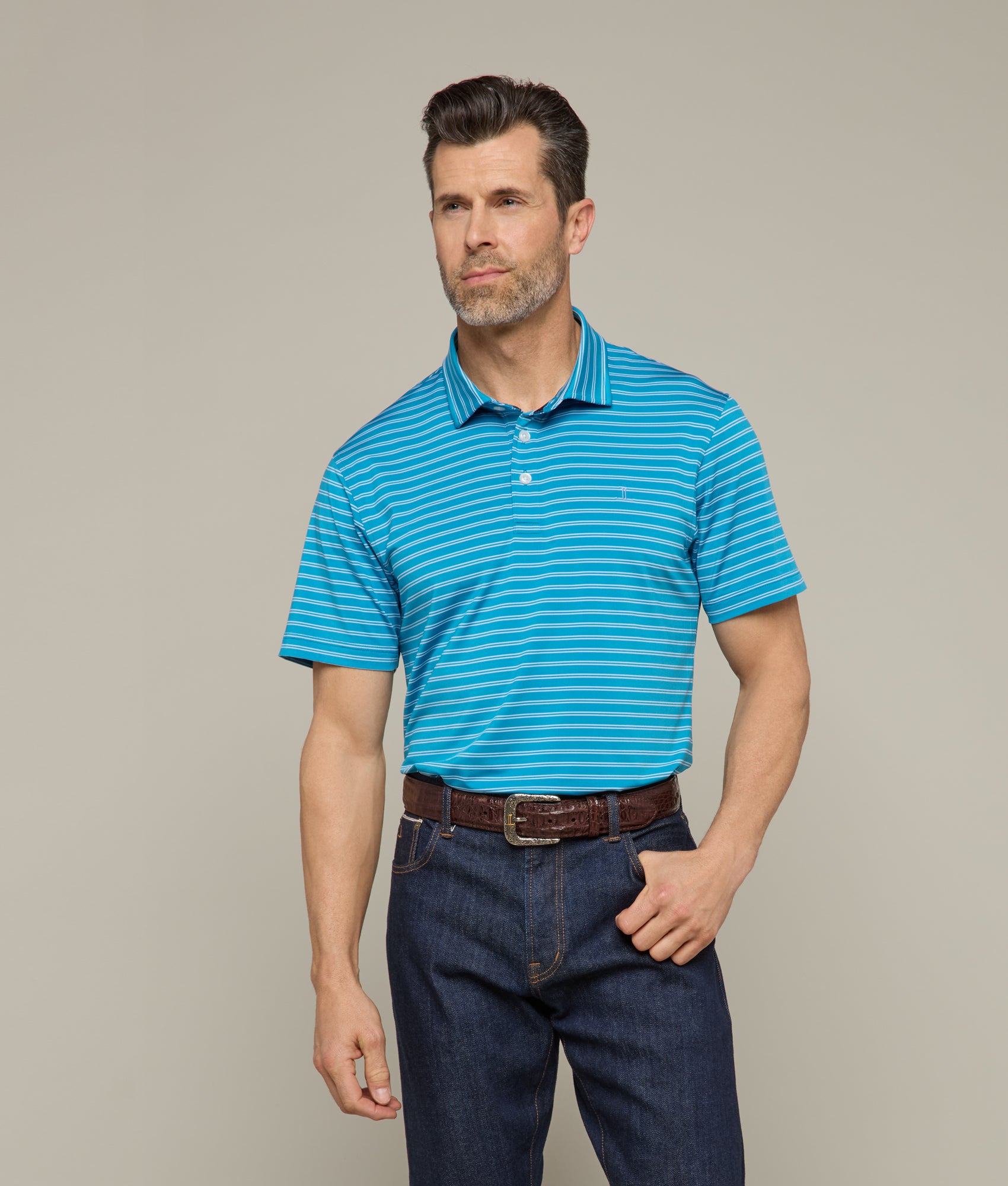 The Lucchese Golf Polo is designed to be worn from the office to the golf course or casual use.?Recycled Polyester and Spandex offer an ultra-breathable piece of clothing while simultaneously looking prepared for the first tee box.