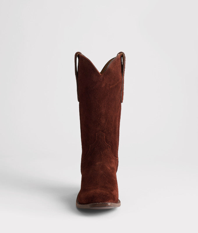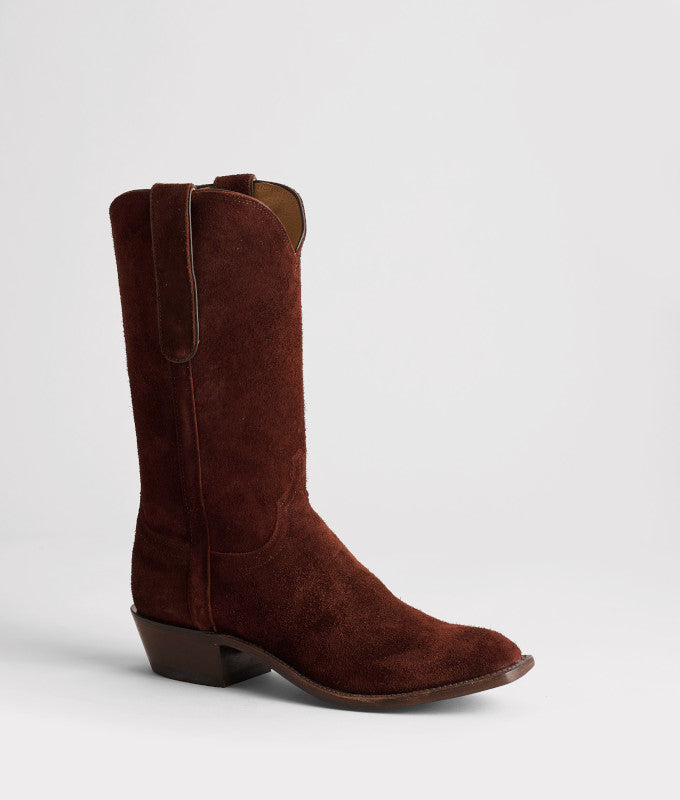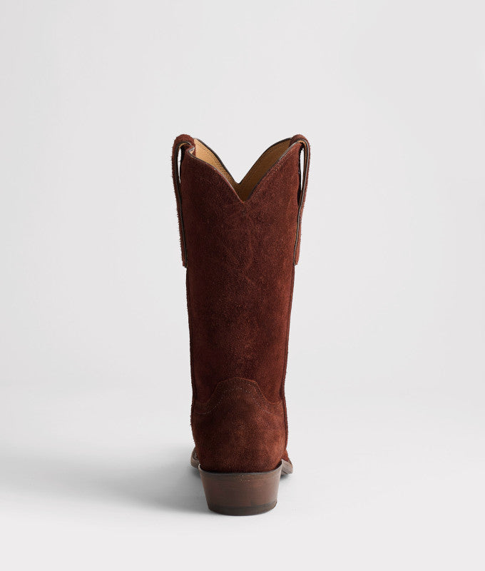 Part of Chris Stapleton’s Volume II collection. the Old Friend pays homage to Chris’ heroes. Rugged in nature and vintage in design. the Old Friend is a piece of the songwriters’ uniform. This Western silhouette bridges the gap between grit and traditionalism with silky Italian suede and classic Mule Ear pull straps – a Torero side seam lends visual texture to a timeless boot. Handmade in Texas.
