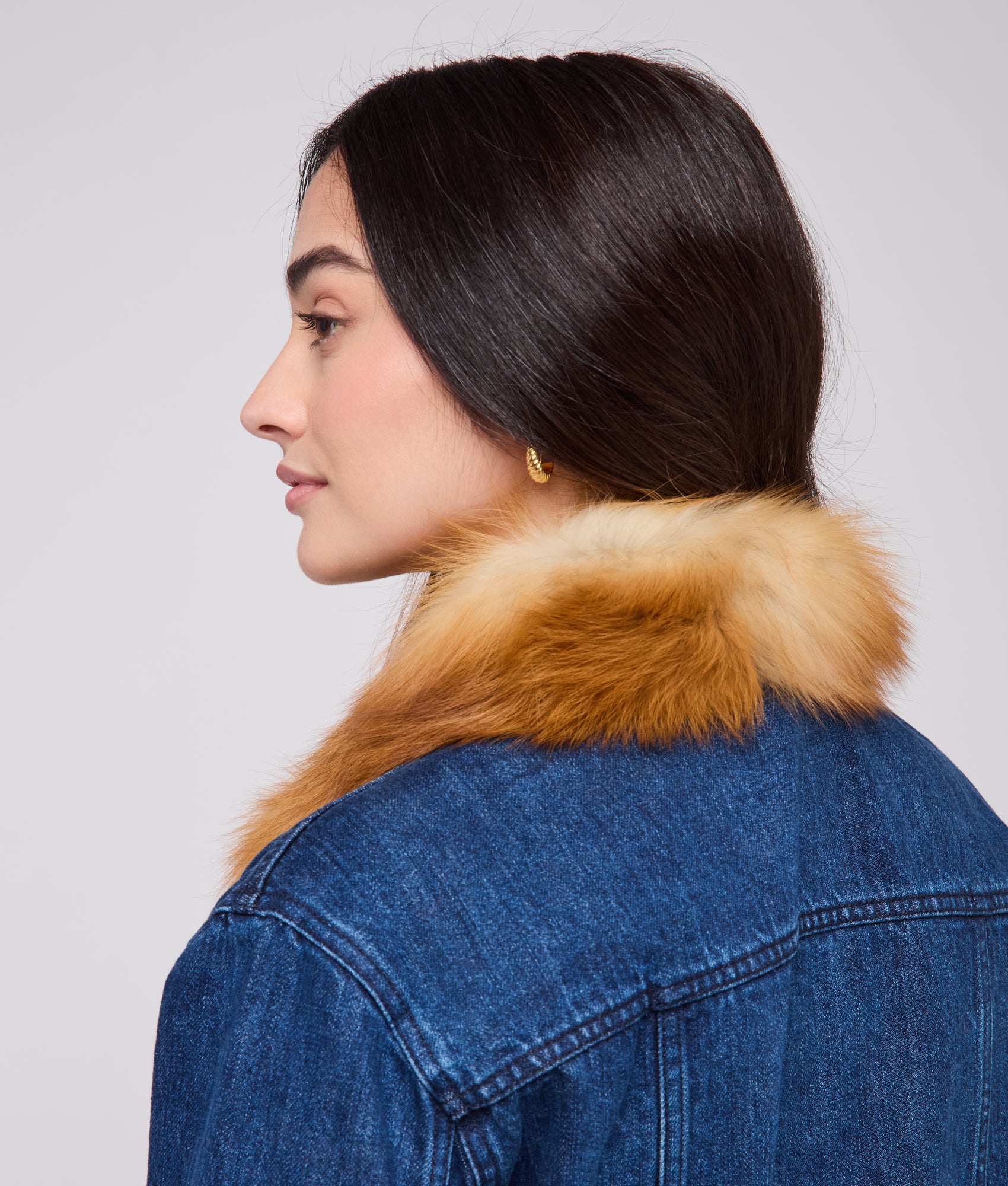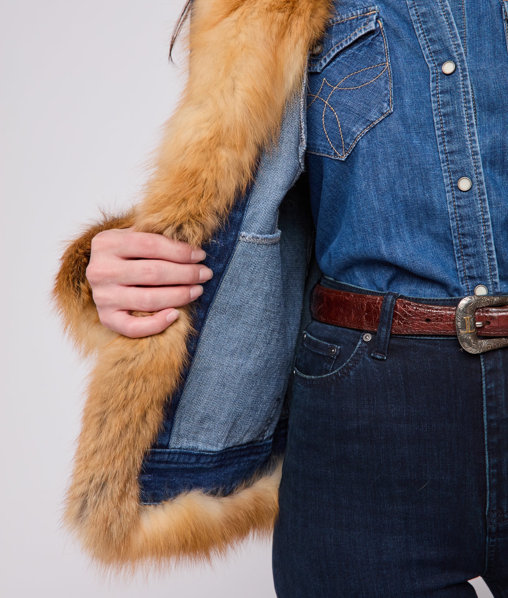 The Reverie Jacket redefines luxury with striking fur trimming along the collar and cuffs. From the streets of Paris to the fields of Montana. this statement piece embodies the elegance of a woman and the boldness of a cowgirl.