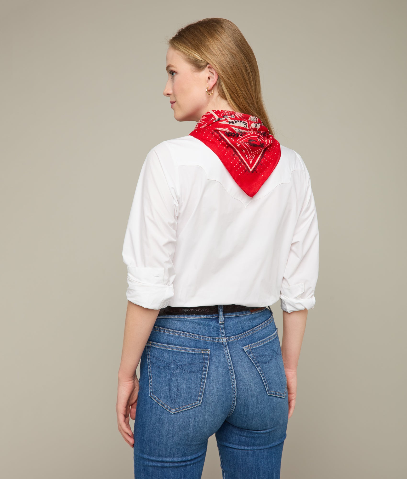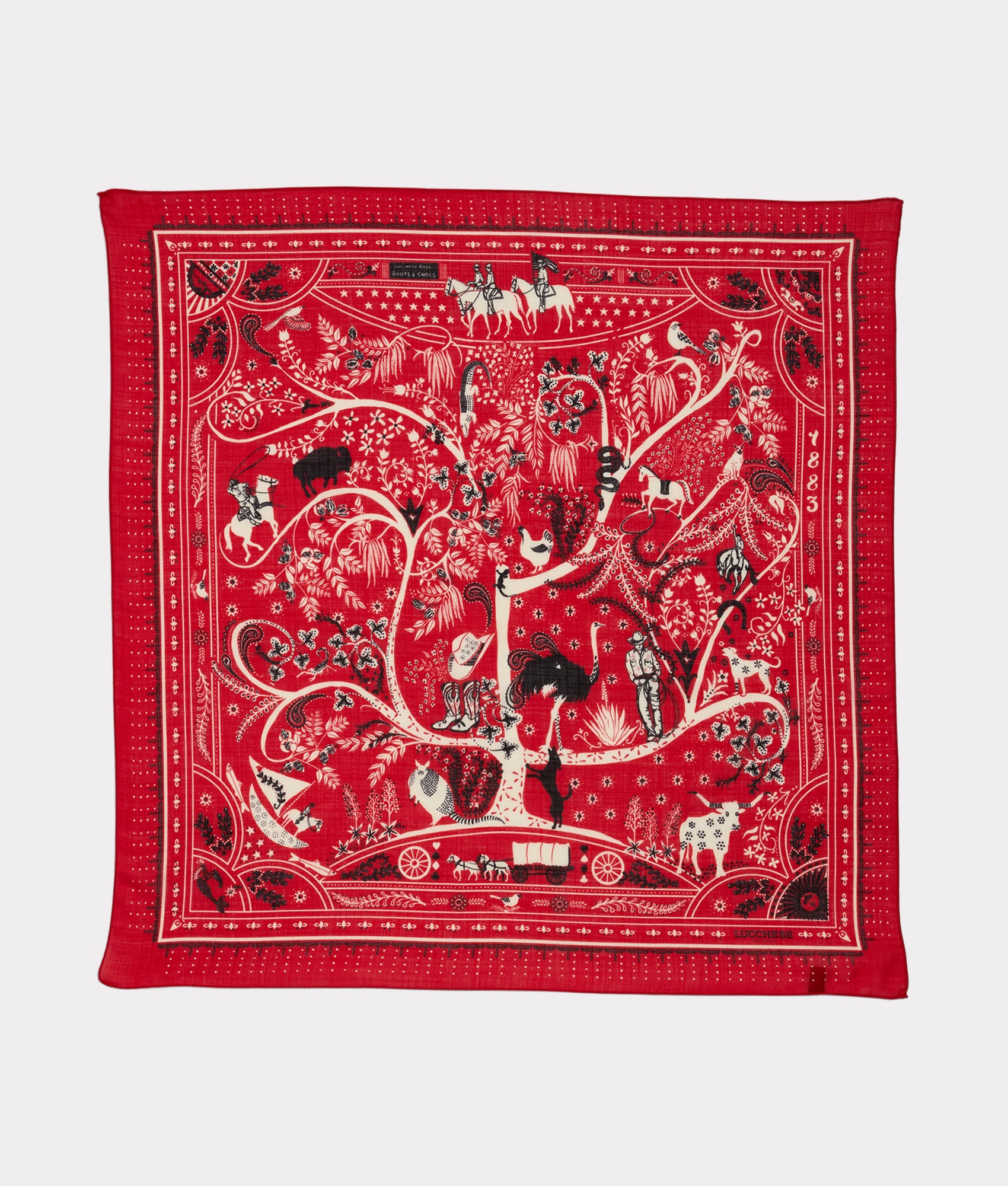 The Roots Silk Scarf is a timeless tribute to the rich heritage and deep-rooted history of the American West and Lucchese. Featuring intricate motifs that celebrate the spirit of the frontier. the scarf weaves together iconic symbols of the past. These elements are artfully intertwined in the delicate branches of a tree. evoking the interconnectedness of nature and tradition. Each detail on this scarf tells a story. offering a glimpse into the rugged beauty and enduring legacy of the West. while embracing the artistry and craftsmanship Lucchese is known for. The Roots Silk Scarf is not just an accessory. but a wearable piece of history. capturing the essence of time-honored Western culture.