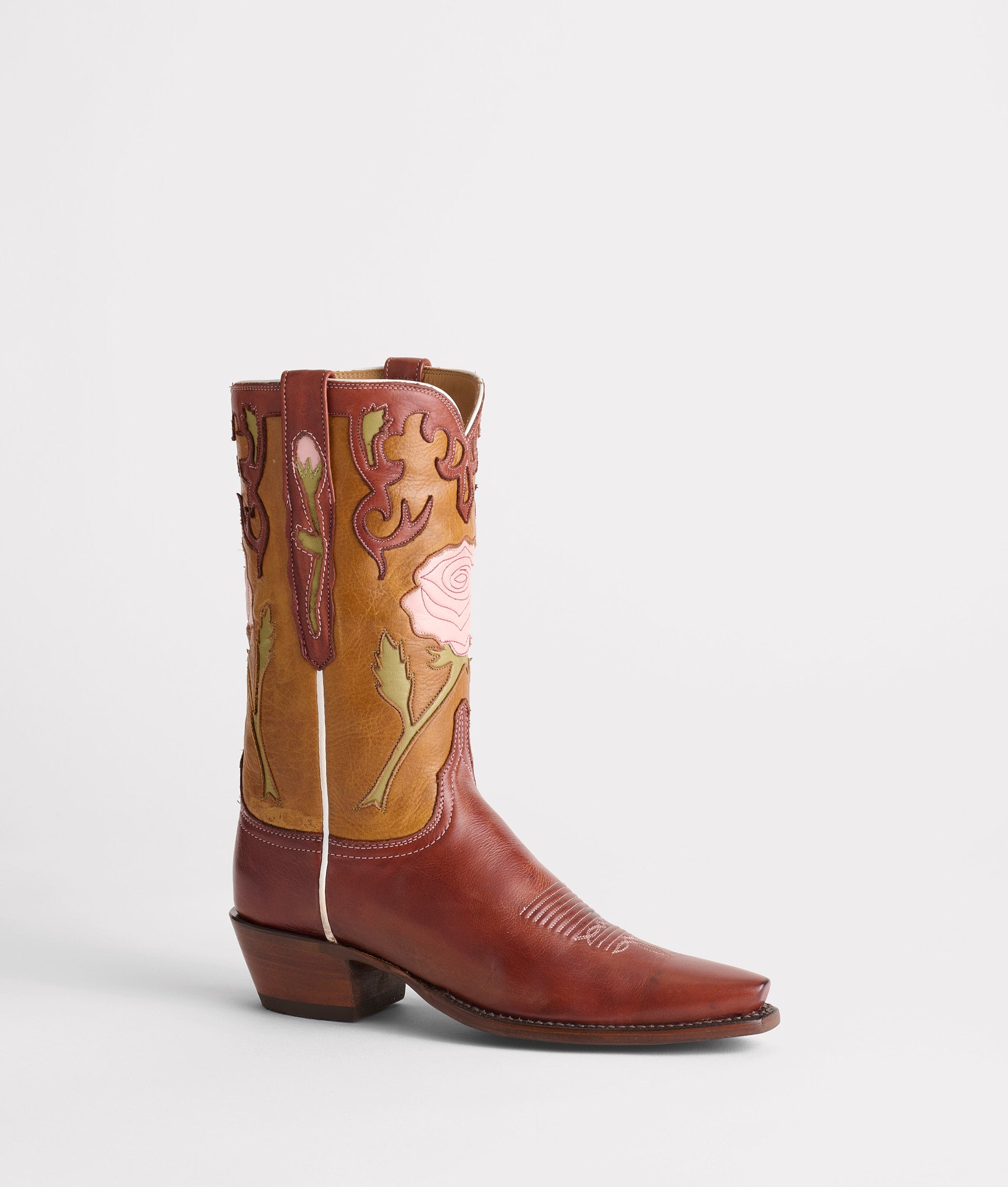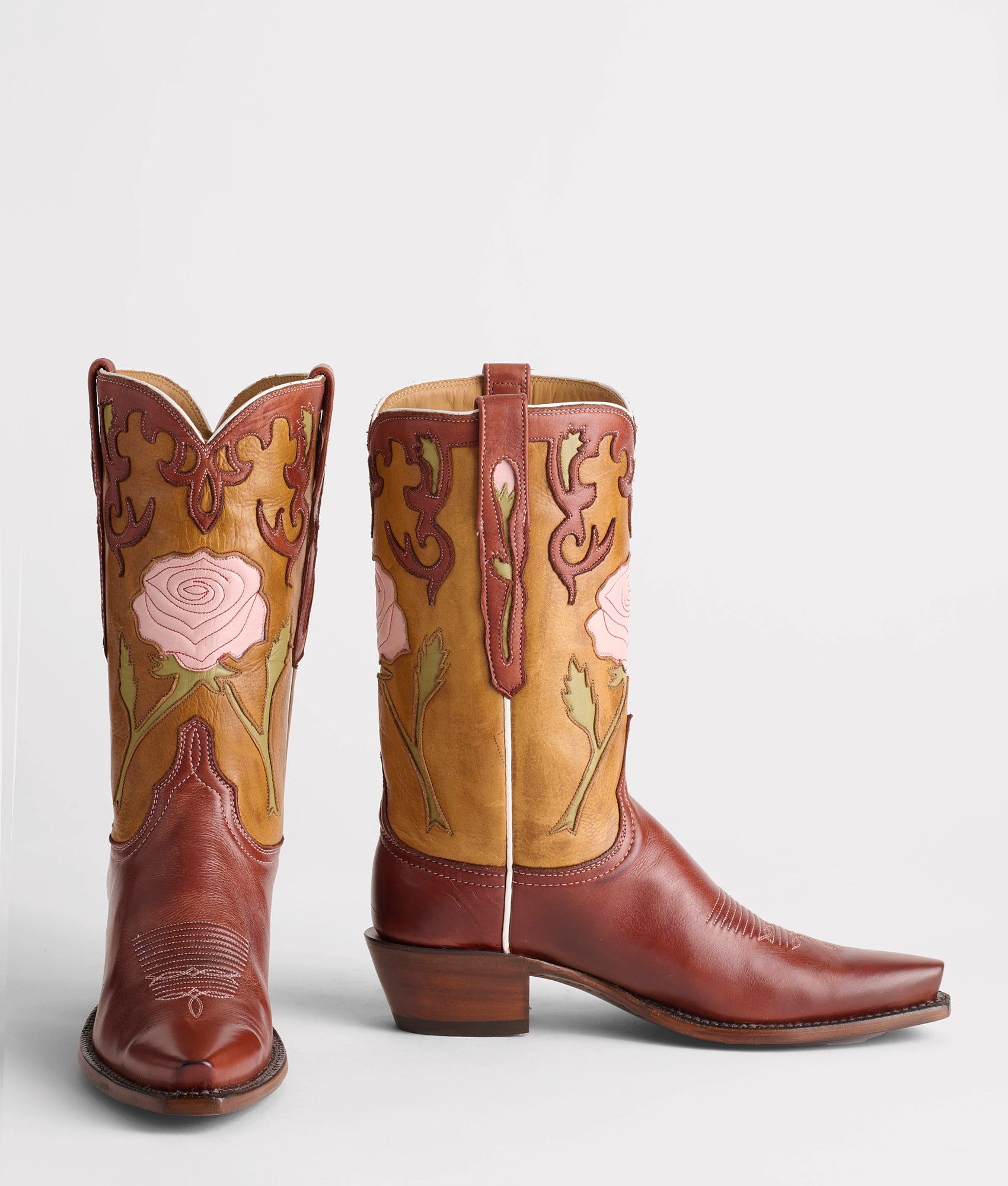 Instead of relying on a Texas rain to grow a rose. our hope lies in the hands of the world’s best bootmakers in El Paso. Texas. Rosalina looks and feels feminine and. with a little imagination. can be interpreted through the lens of popular ’90s film. Fully crafted from Old English Goat leather in warm desert hues ?C nothing says hope. grace. and beauty like a pink rose. Handmade in Texas.