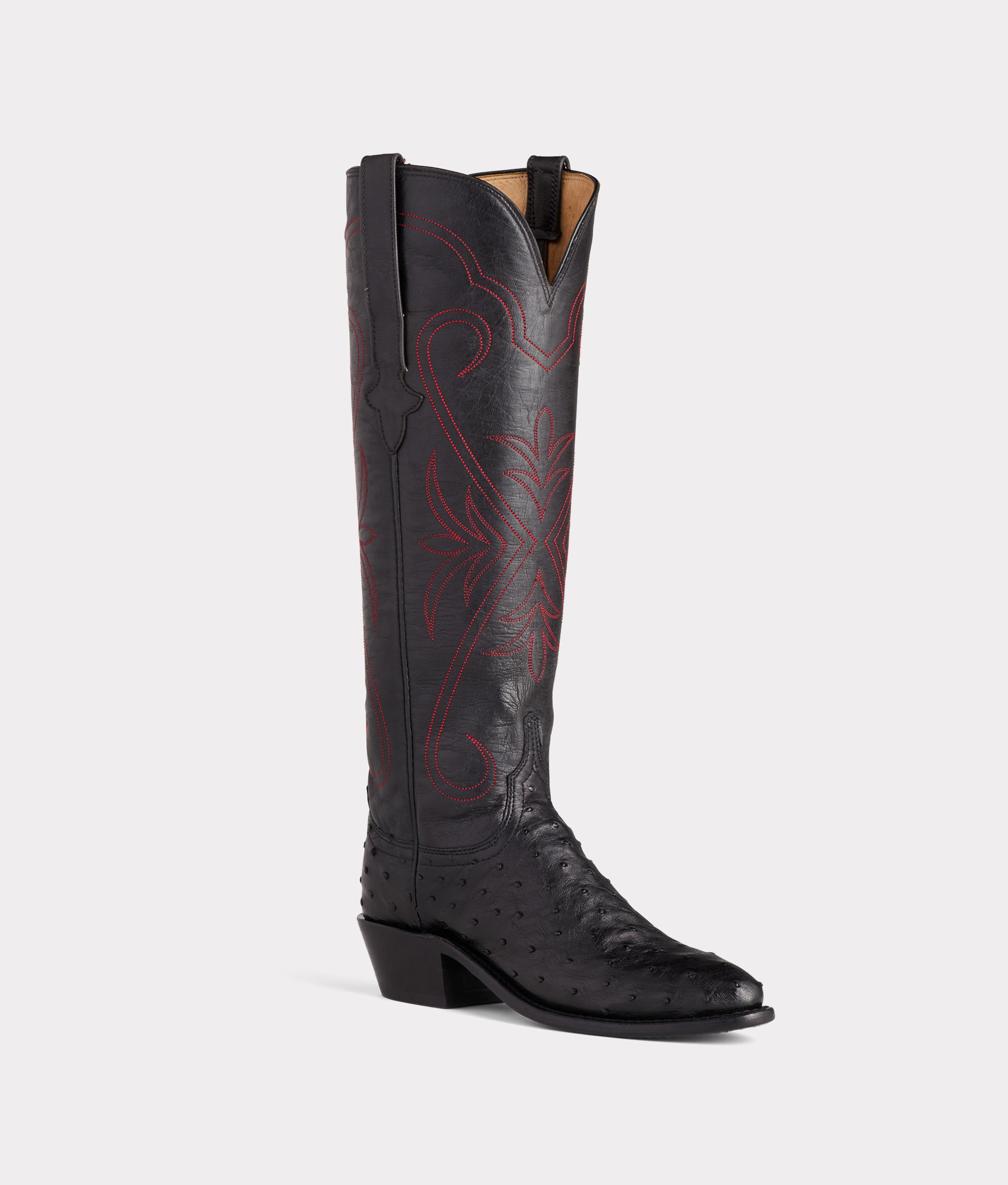 New colors. New leathers. Same silhouette. As Saltillo Tall Exotic debuts in Full Quill Ostrich leather. we can’t help but be reminded of her original bovine counterpart. The Saltillo Tall silhouette is timeless ?C 17-inches of smooth lines and defined edges. Named after the quarter stitch pattern and exotic vamp. she’s a style that speaks the universal language of beauty and grit. Full Quill Ostrich leather not only offers the perfect cadence of raised crowns for a look that is undeniably Lucchese. but a feel that is ‘out-of-the-box’ ready. Don’t let its buttery quality fool you. the tensile strength of this exotic leather can withstand the elements. Handmade in Texas.
