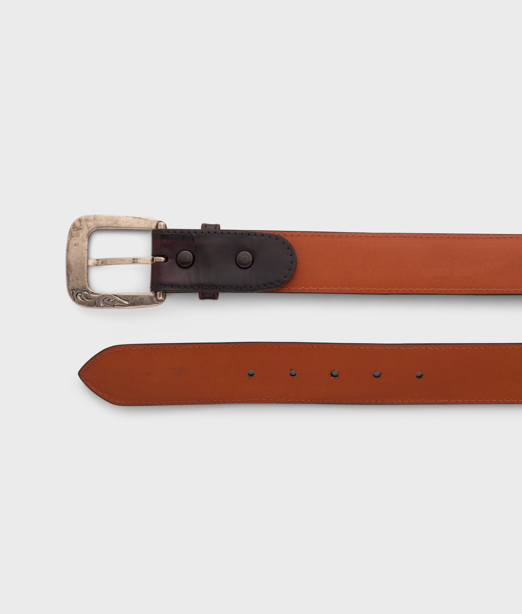 Lucchese belt for men made with smooth mad dog goat leather. The belt’s silver plated buckle has intricate details that pay homage to the West and add character to the belt. Handmade in Texas. 1.5 wide Removable buckle *Color may vary slightly due to hand finishing techniques.