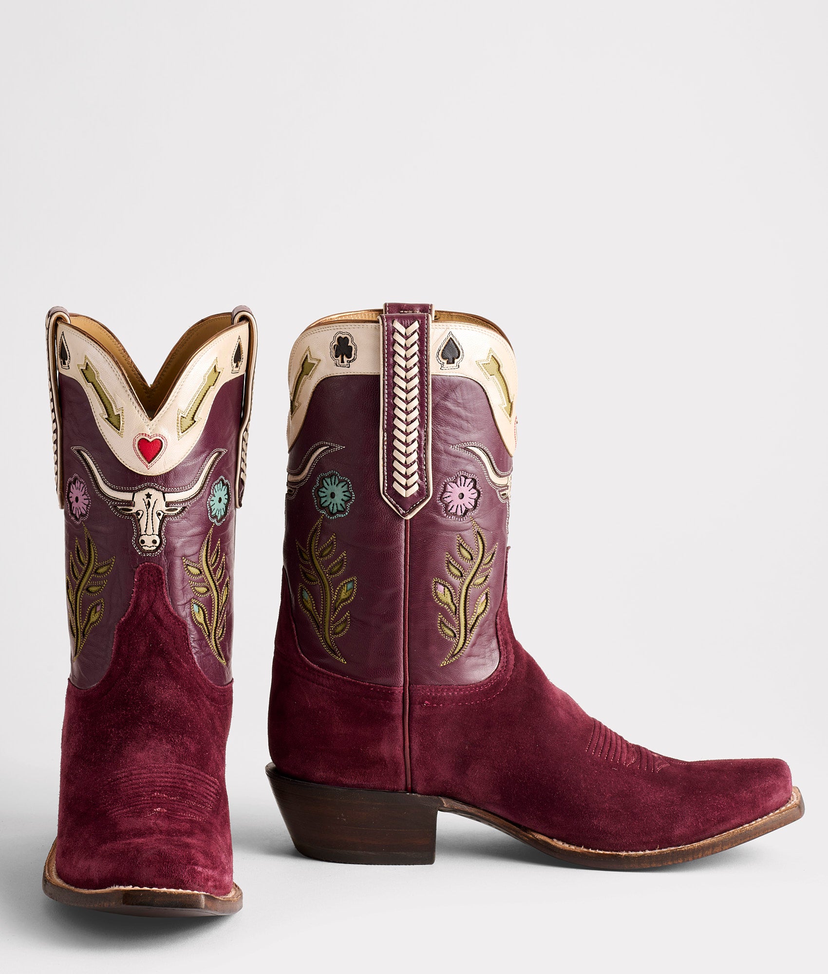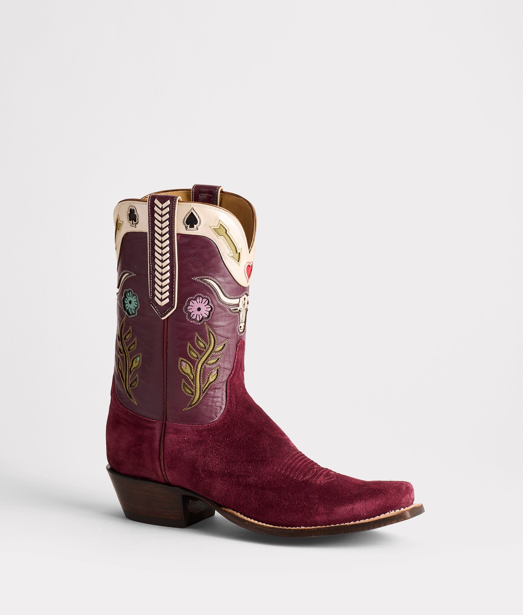 The Watchman is a quiet guardian??a hybrid style that keeps a low profile yet holds your gaze. Its muted base. crafted from smooth Ranch Hand leather and silky Italian Suede. is accented with pops of color in the Victorino inlay. This eclectic contrast reveals itself only when the moment calls. The Watchman merges the shaft height of a roper with the toe and heel of a western boot. creating a thoughtful balance between two classic silhouettes. Traditional cowboy hues anchor the vamp. refined and understated under denim. But cross your legs. and the quarter’s vibrant inlays reveal themselves??subtle. intentional. and quietly confident. This boot doesn’t seek attention but stands guard. protecting. preserving. and enduring the West. Handmade in Texas.