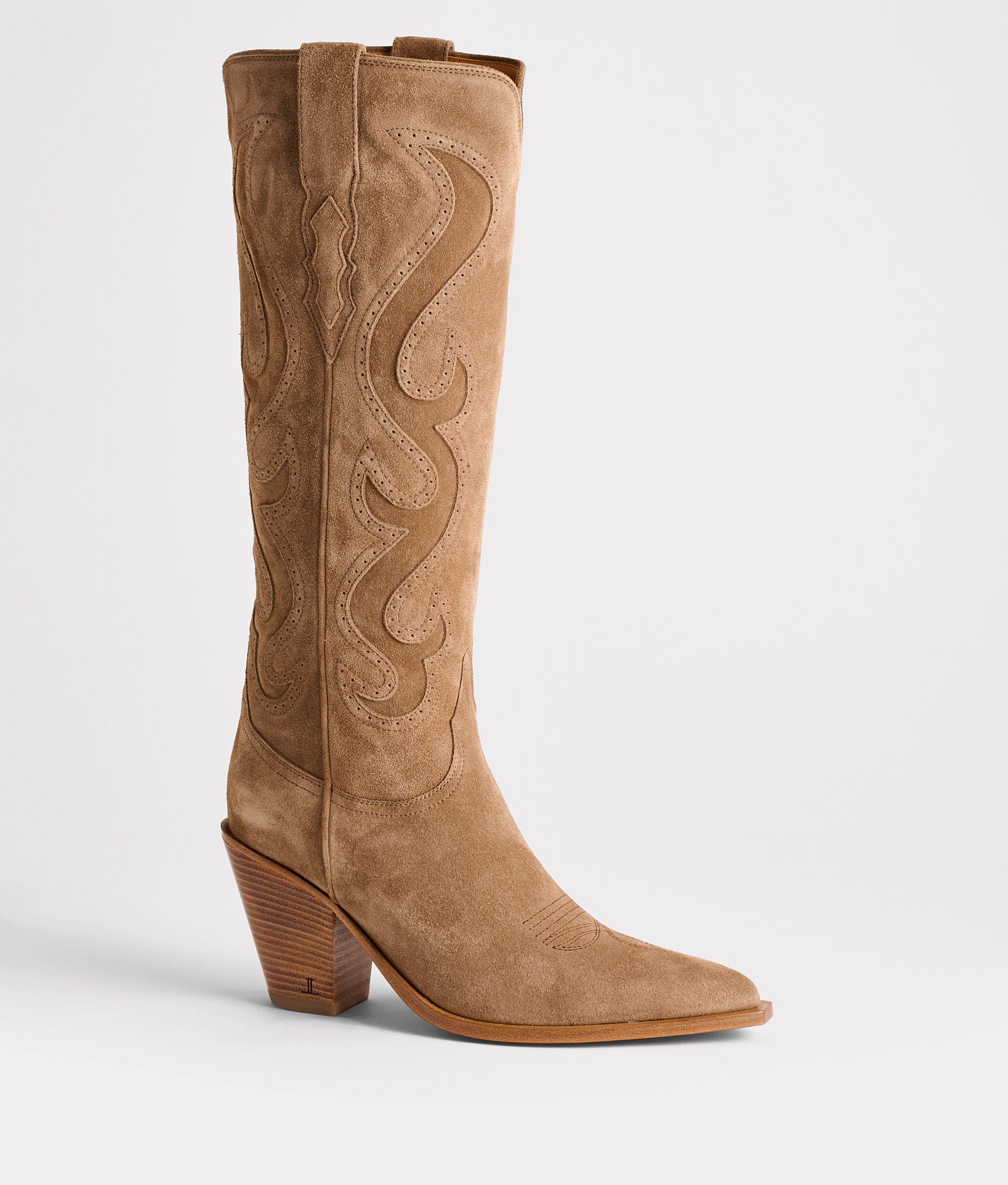 Named for the Italian word meaning ‘victory.’ the Vittoria stands as a testament to the dialogue between European artisanship and the culture of the American West. Rendered in two colorways and crafted from the world’s finest materials. Vittoria appears in rich espresso Italian suede with inlay work reminiscent of Renaissance detailing. or in vogue black calfskin tops paired with muralled python vamps. She carries a bold presence. not only through her 90 millimeter fashion heel. celebrated in the world of shoemaking. and her 15 quarter. but in every hand-finished detail. Handmade in Italy.